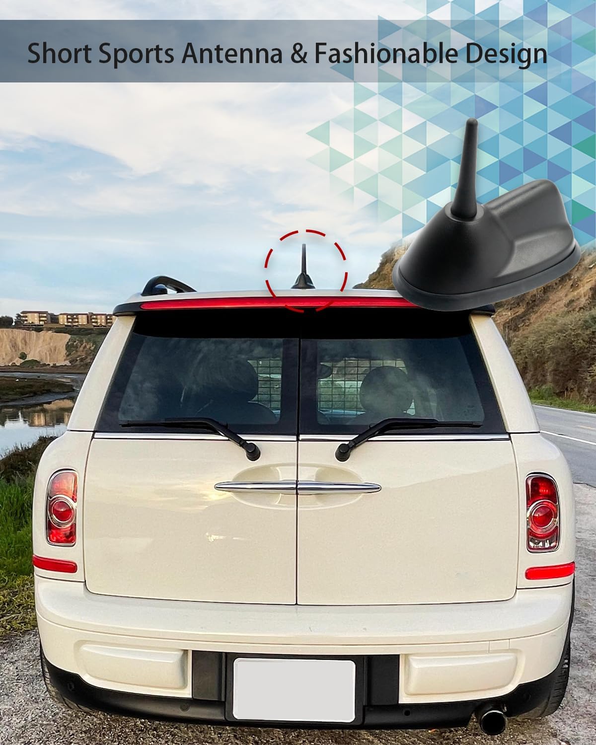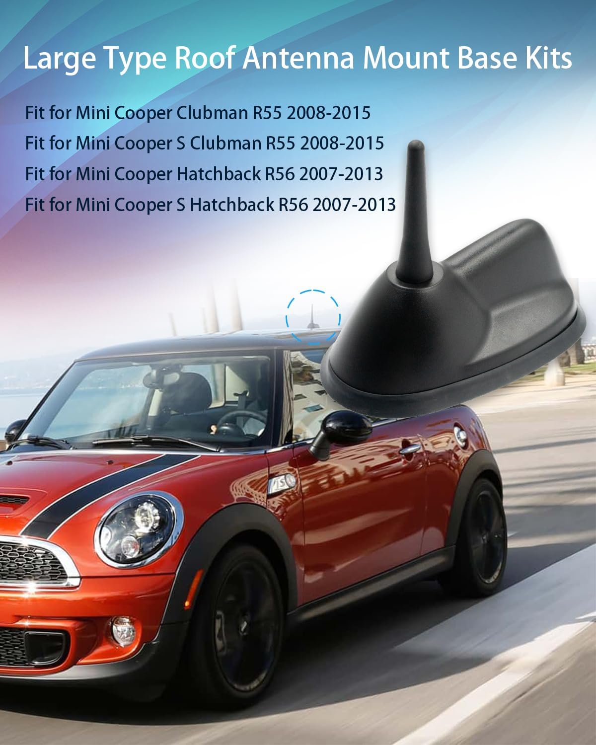 Large Type Roof Antenna Mount Base with Rubber Gasket&Short Sport Antenna Fit for Mini Cooper/Cooper S Clubman R55 2008-2015,Fit for Mini Cooper/Cooper S Hatchback R56 2007-2013