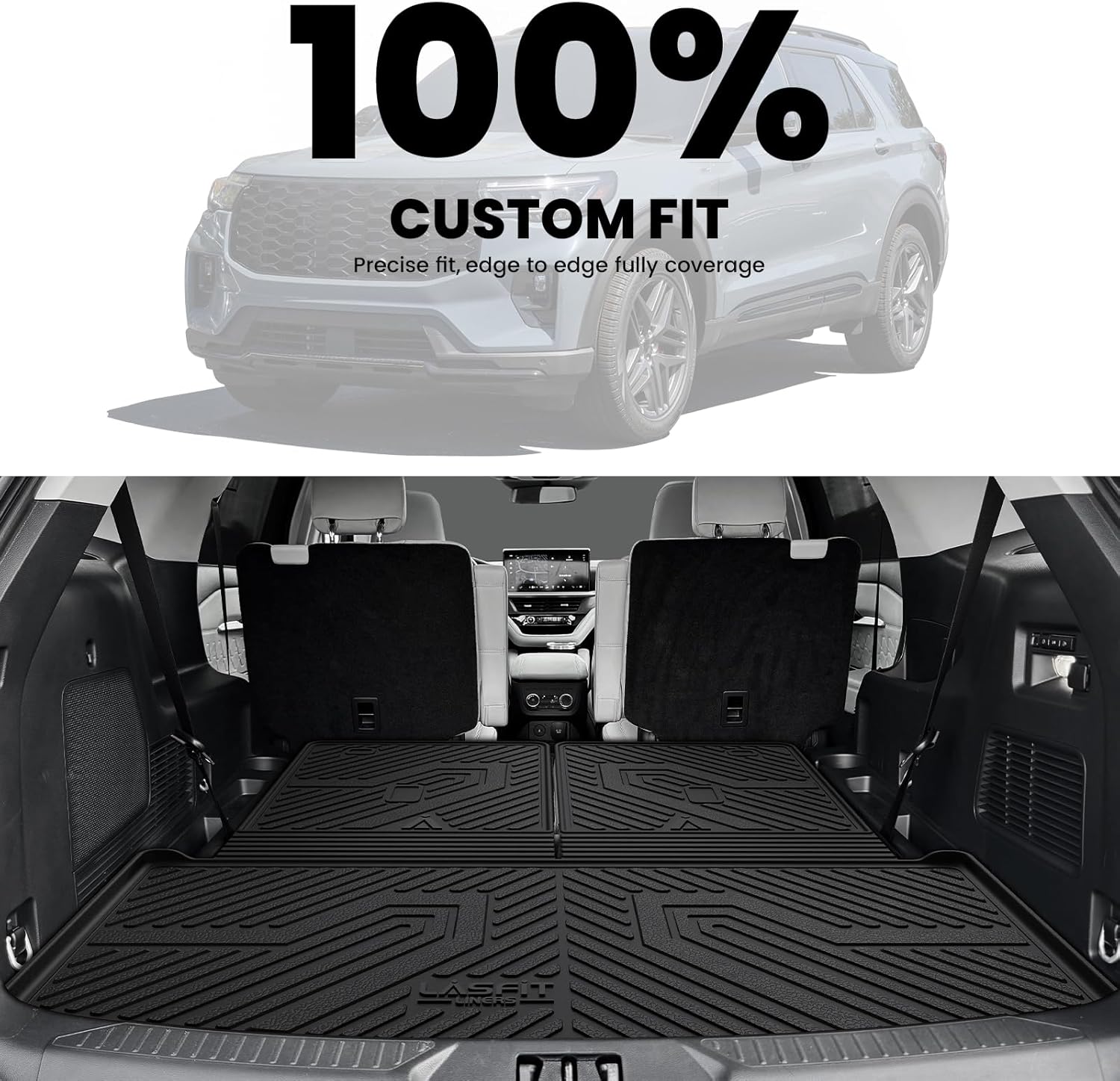 【Fits Like a Glove】Custom Fit for Ford Explorer 2020-2025. LASFIT cargo and backrest mat are precisely designed using 3D real-vehicle scanning technology to accurately capture interior data and undergo multiple vehicle verification to ensure a vehicle specific fit
