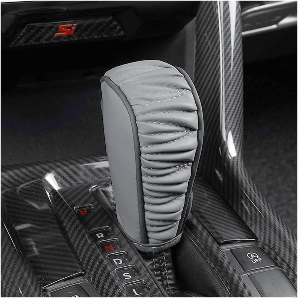Leather Car Gear Shift Knob Cover, Anti-Slip Waterproof Vehicle Shift Stick Protector, Soft Breathable Auto Interior Shifting Lever Decor Accessories, Universal for SUV Sedan Truck (Gray)