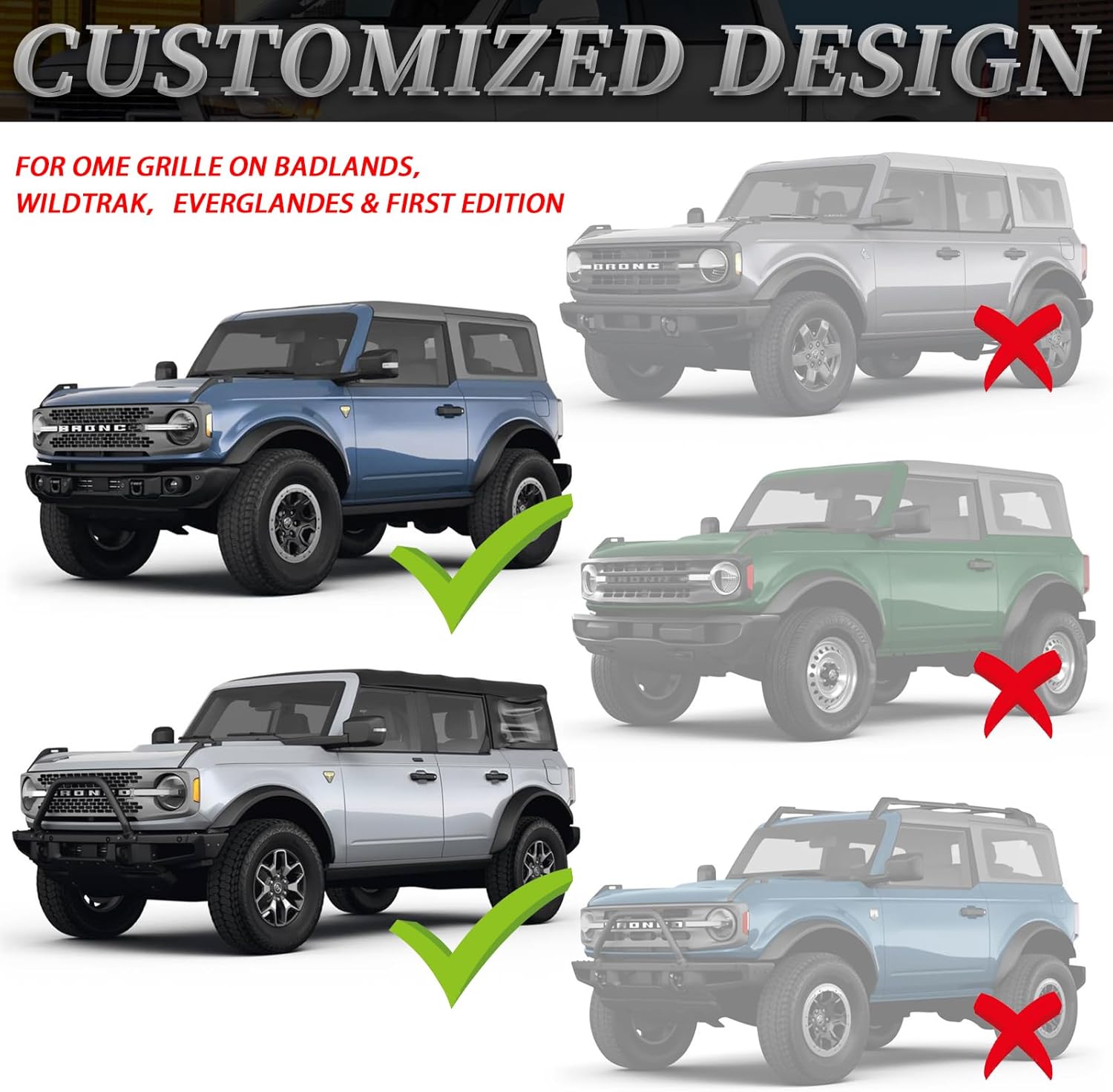 Fitment Models:Only compatible with Ford Bronco 2021-2023 2/4 doors Badlands/Wildtrak/Everglades