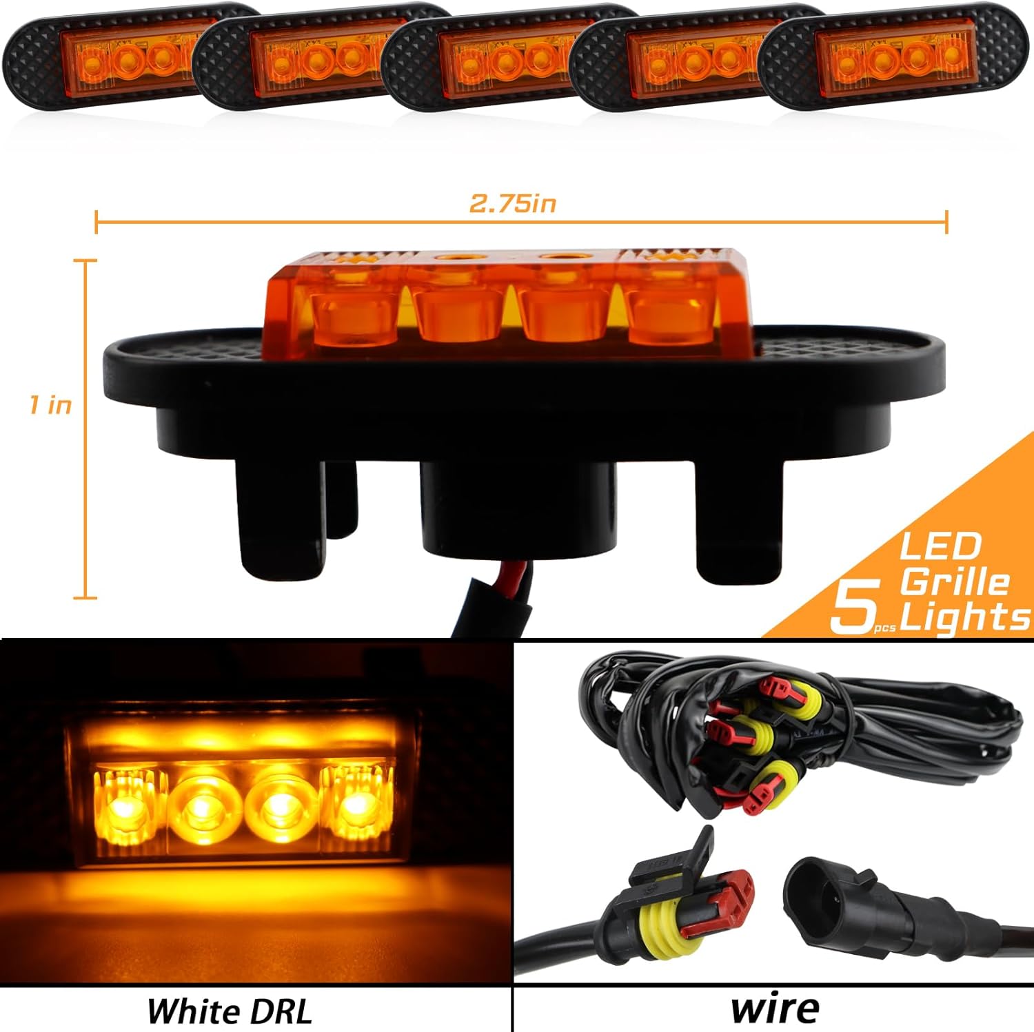 3.Package comes with 5pcs LED grill light, 1pcs wire harness