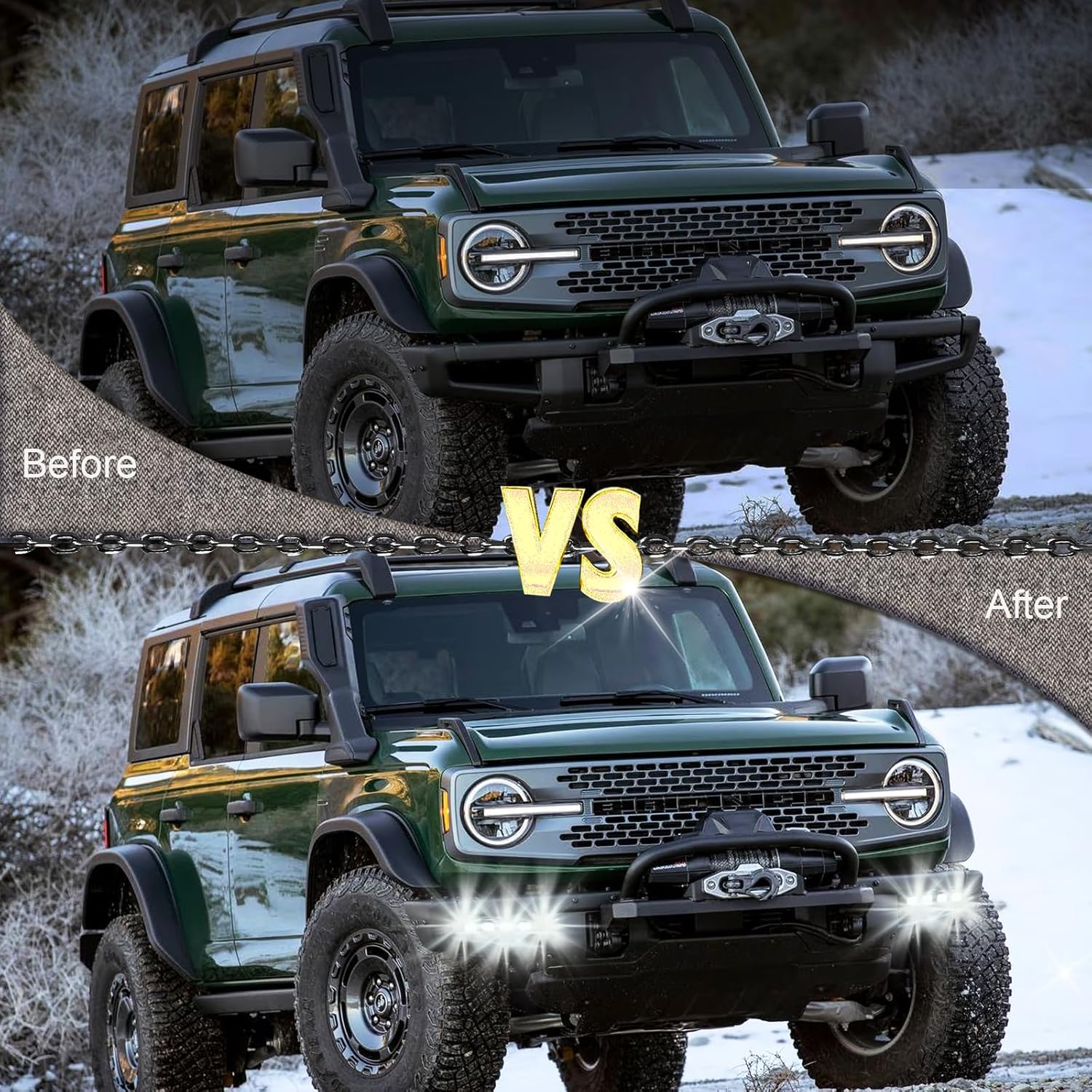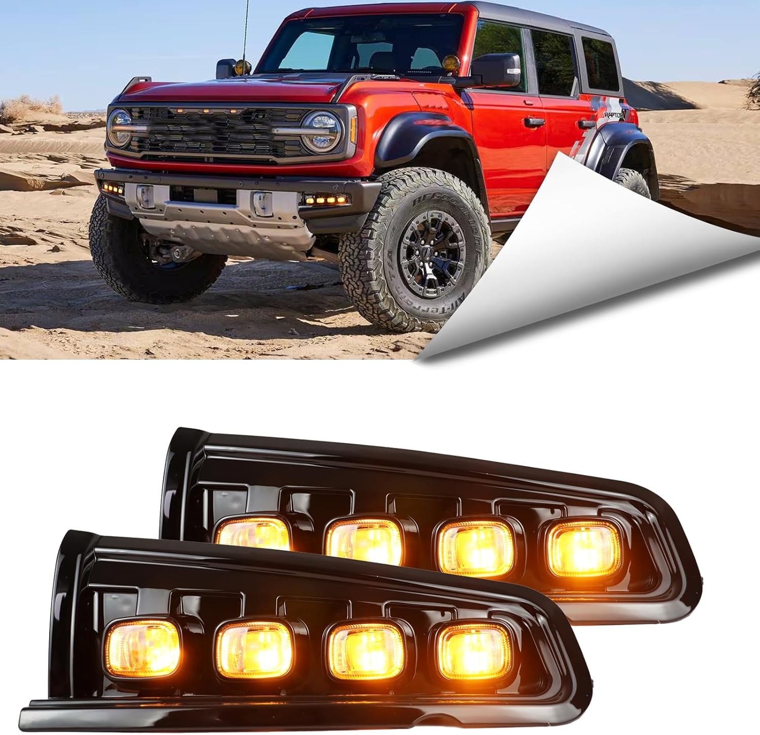 LED Front Bumper Fog Light Daytime Running Lamp White/Amber Dynamic Sequential Flash Turn Signal Light DRL Compatible with Ford Bronco 2021-2023