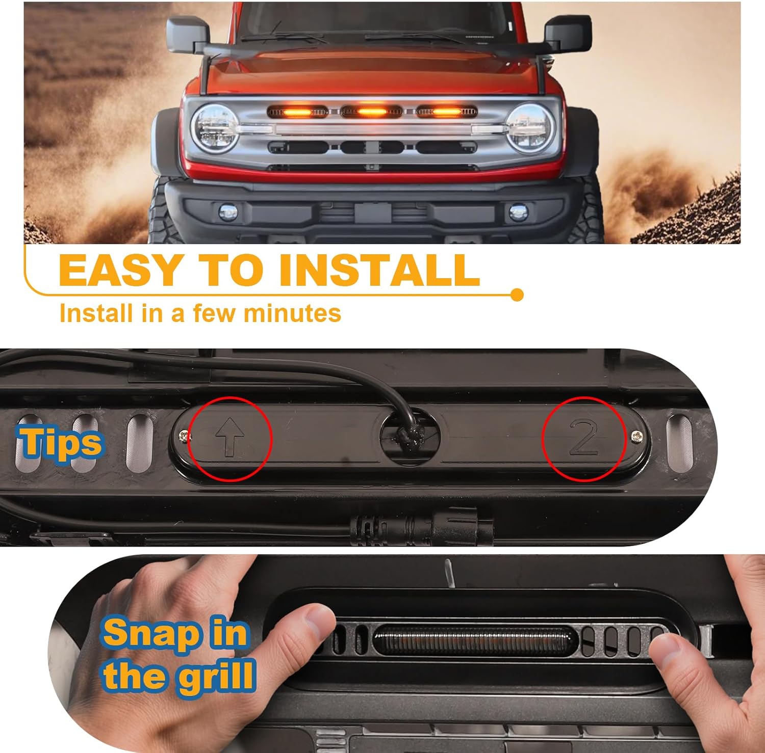 [Attention-grabbing for Vehicles and Pedestrians Ahead] – The 2023 bronco grille light features LED technology, offering bright illumination to enhance visibility.