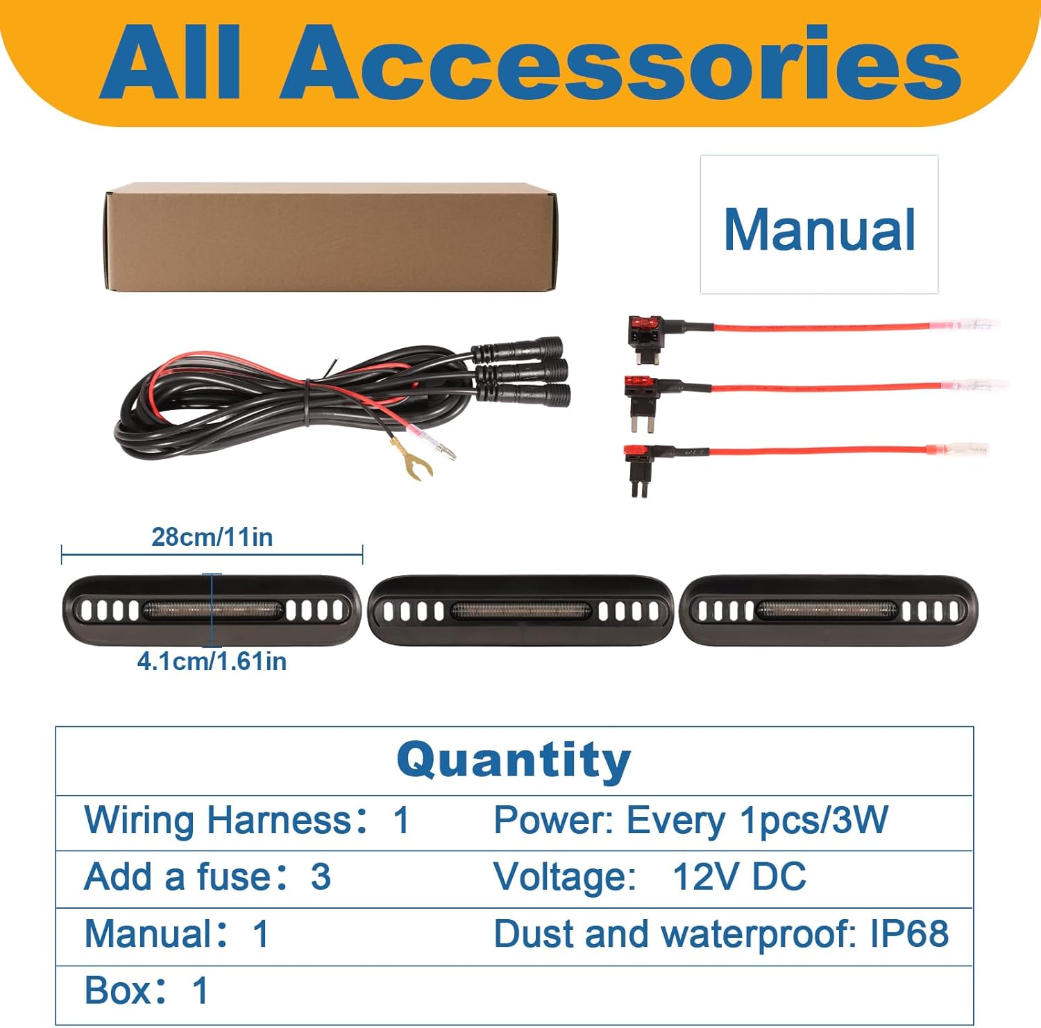 [IP68 Waterproof Materials] -The bronco grille inserts lights features an IP68 waterproof interface, safeguarding against moisture and dust ingress.