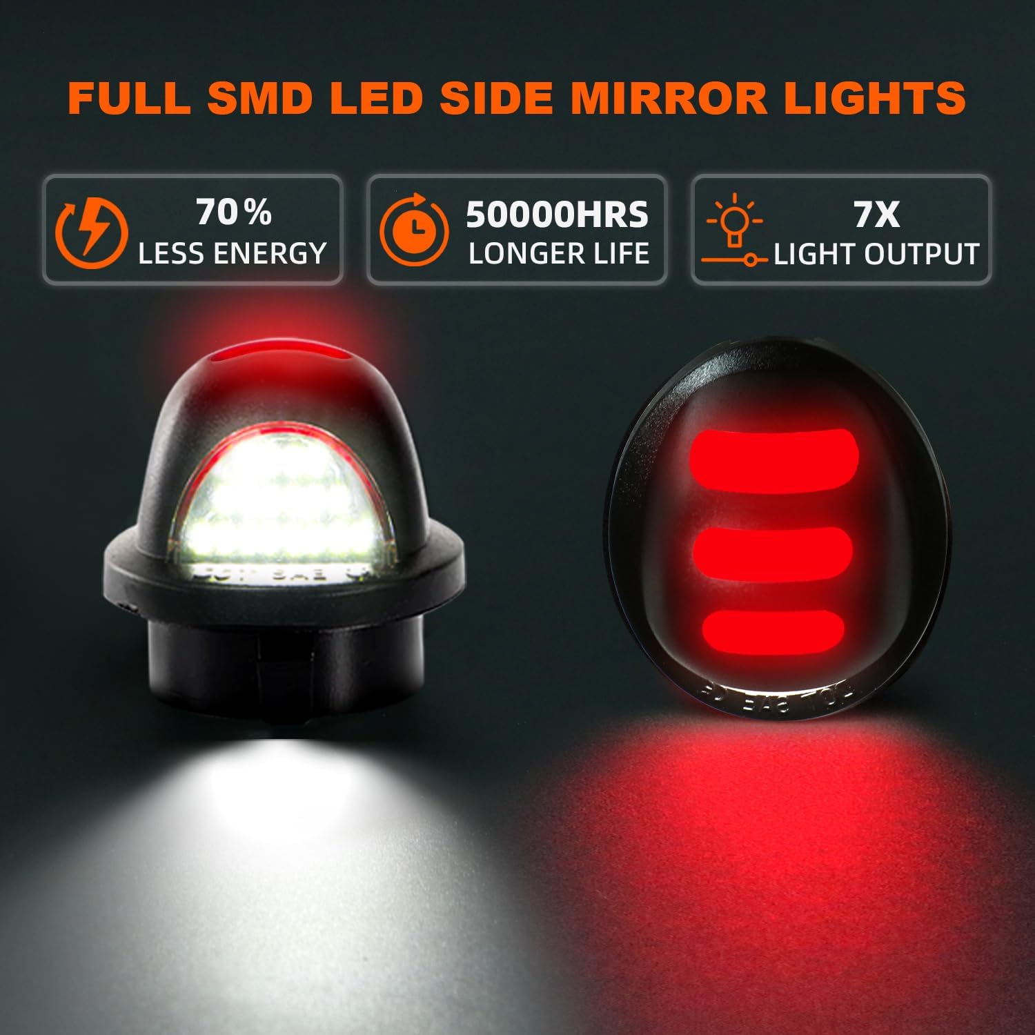 White light illumination, clear license plate: high-efficiency LED lamp beads are used to release 6800K pure white light, which is specially designed to clearly illuminate the vehicle license plate to ensure safe driving at night. Red light warning, guarding the rear: equipped with ultra-bright LED tri-shaped, emitting eye-catching red light, effectively reminding the rear vehicle and increasing safety when parking