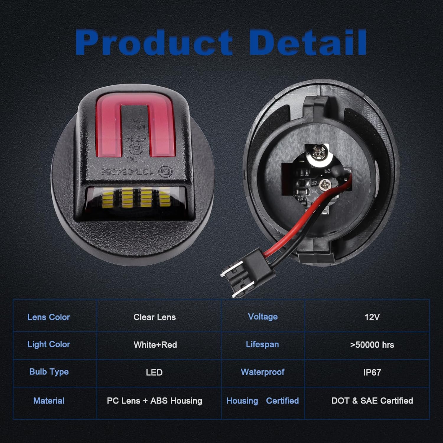 LED License Plate Lights Tag Lights Compatible with F150 F250 F350 Super Duty Ranger Explorer Bronco Excursion Expedition Rear Bumper Tag Lamp, White Light & Red U-Shaped Light Strip
