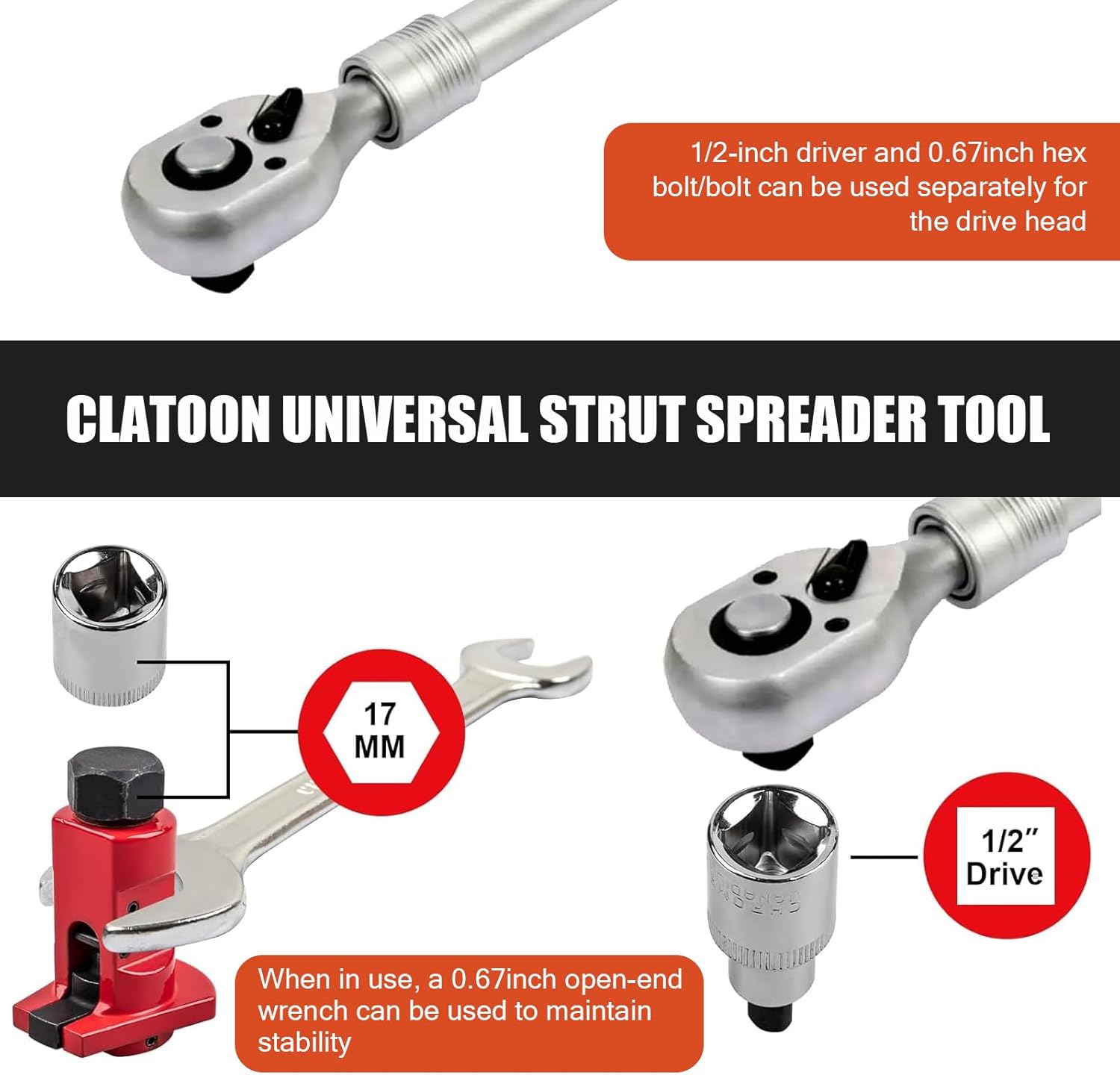 leechio Strut Separator Tool, Car Shock Absorber Sheep Horn Removal Tool, Heavy-Duty Suspension Strut Compressor Strut Spreader Tool, Universal Automotive Repair & Maintenance (Red)