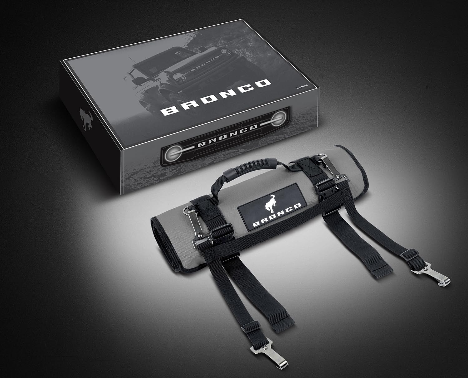 The 84-piece Bronco tool kit has everything Bronco owners need, from basic vehicle maintenance to trail fixes. The tool kit includes a variety of combination wrenches, 1/4-inch, 3/8-inch, drive sockets, and rachets, a 1/2-inch breaker bar, pliers, drivers, hex, torx keysets, Torx Plus bit sockets, adjustable wrench, trim tool, wire, tape, zip ties, and even a stout Ball Pein hammer for some trail side engineering. All this and more are stored securely and quietly within a sturdy polyester roll with dedicated sewn pockets and two zippered pouches. Tools are premium chrome vanadium steel for strength and durability. The tools have polished chrome or industrial black phosphate for corrosion resistance. All tools meet or exceed ANSI standards, and all Bronco branded tools have a lifetime warranty.
