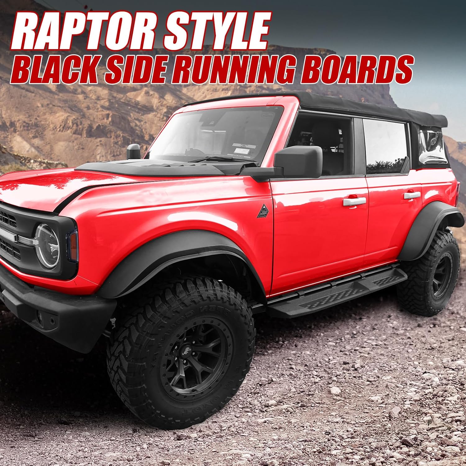 Mabett Raptor Style Running Board for Ford Bronco 2021-2024 4-Door Accessories, Anti-Rust Coating Heavy-Duty Black Side Step Bar