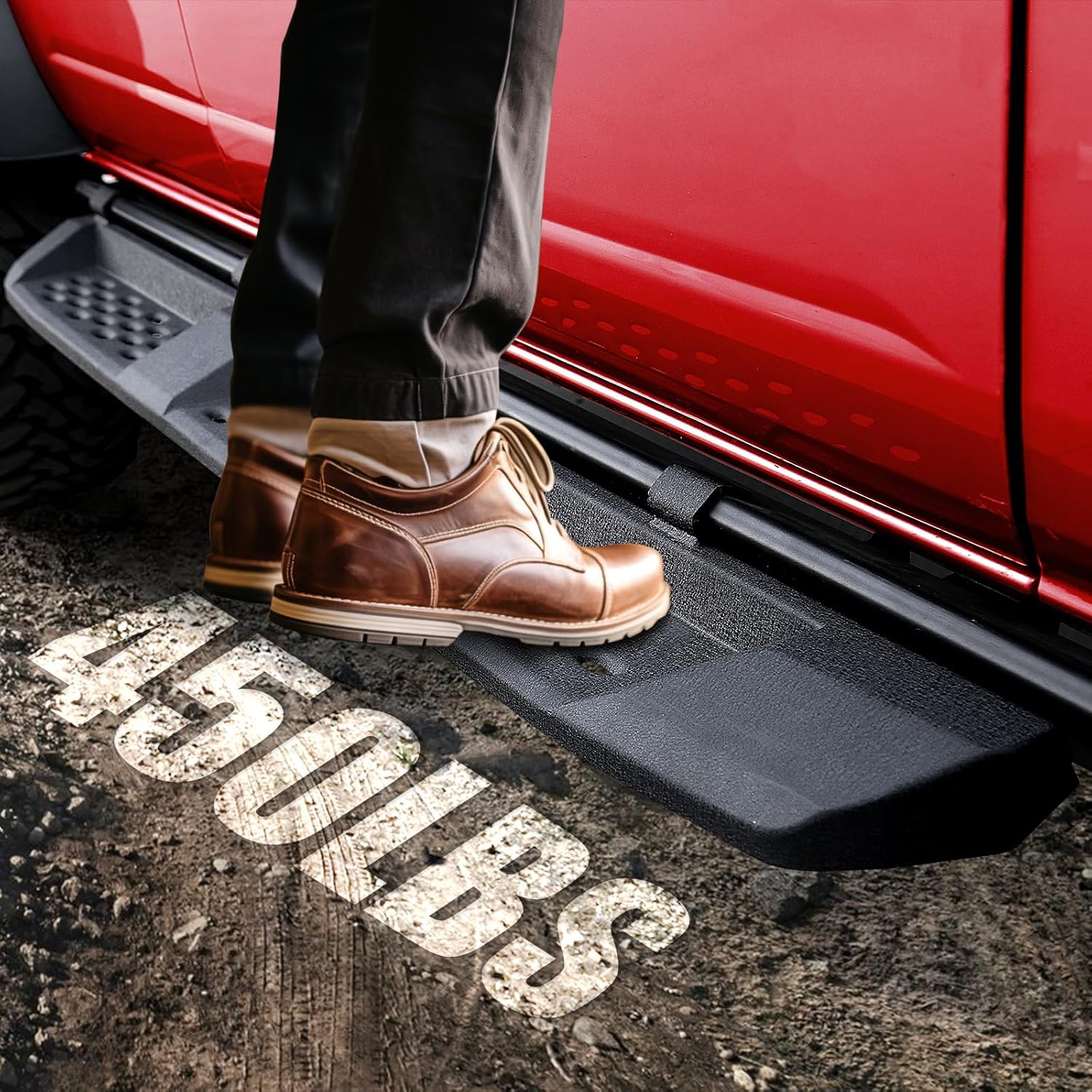 Function: With a maximum weight capacity of 450 lbs, the Bronco running board offers convenient access and exit for the whole family, while also protecting against stones and sand splashes.
