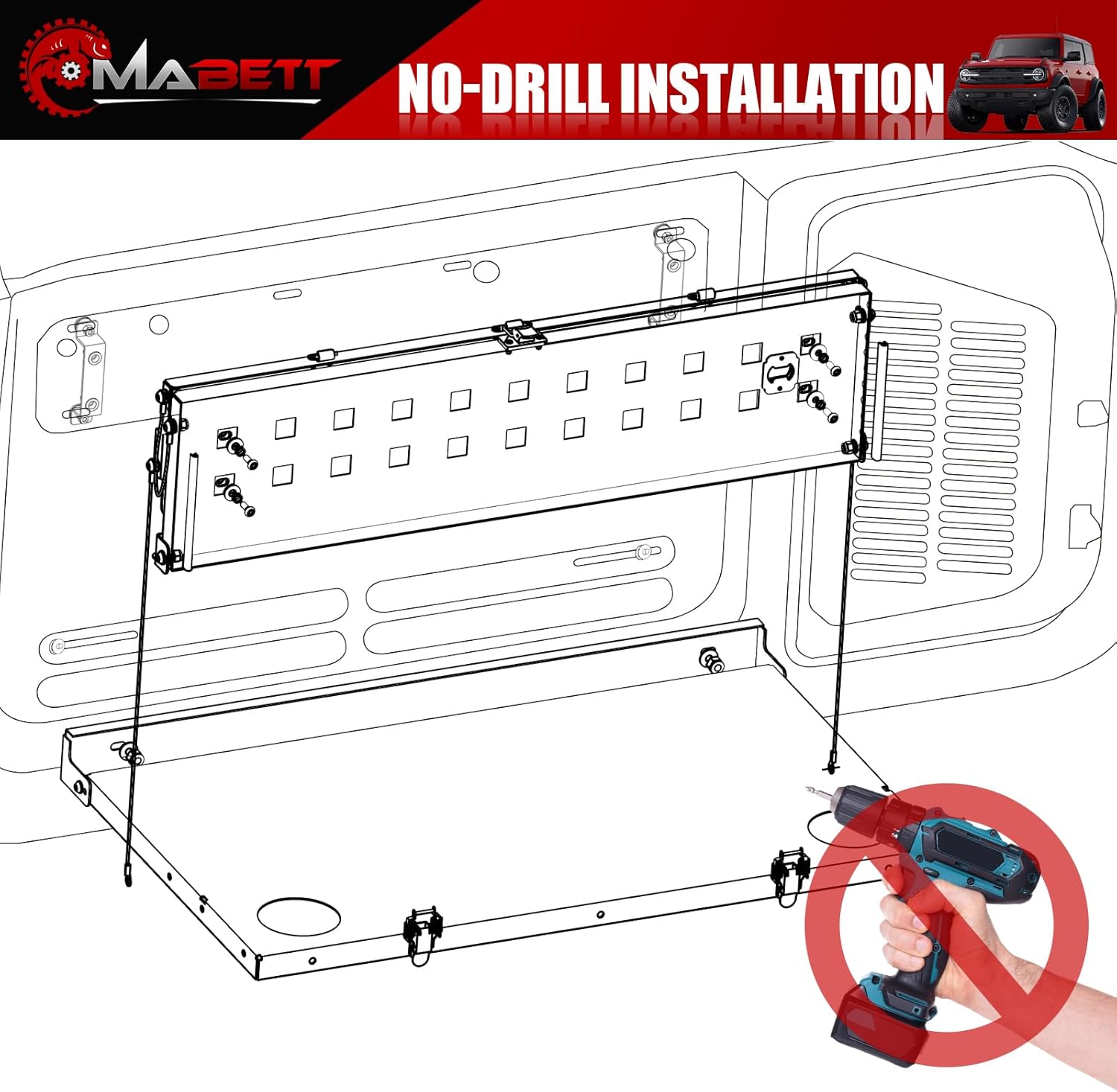 Mabett Tailgate Table for Ford Bronco 2021-2024, Carbon Steel Foldable Molle Panel Double-Layer Cargo Shelf Compatible with Bronco Accessories