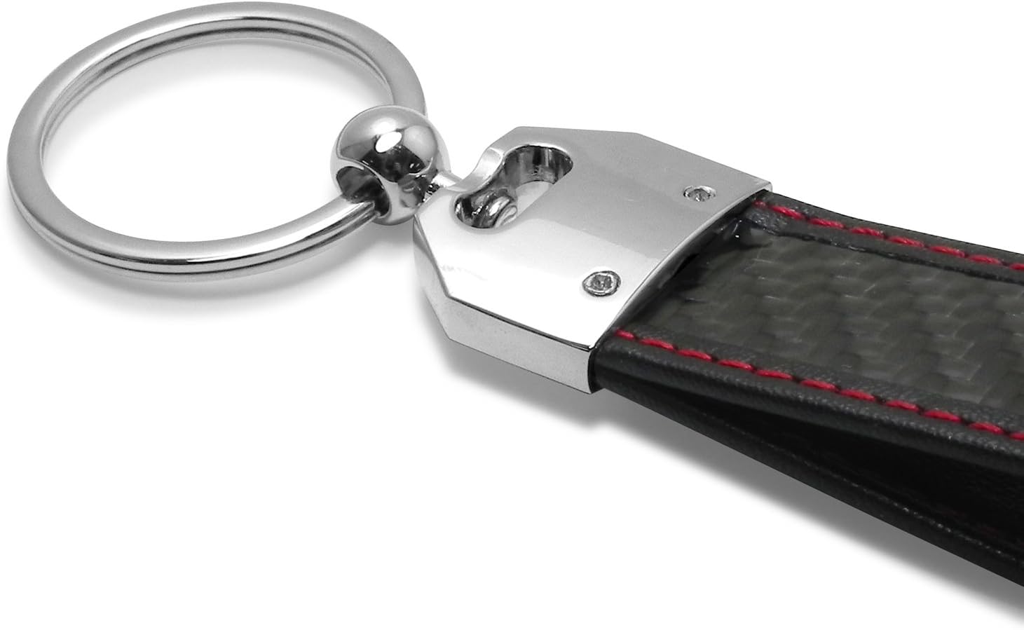 Fashion with style. The one-piece design has an elegant look from every angle. Top grade soft genuine black carbon fiber strap with a genuine leather cover edge, red stitching. Full-color UV resistant OEM style car logo graphic on one side. The chrome metal finish block top has a key ring for easy to attach and release keys. Color: Black. Size: 4″ x 1″. Perfect gift for you or a loved one. Brand new official licensed product made by iPick Image, LLC. All rights reserved.