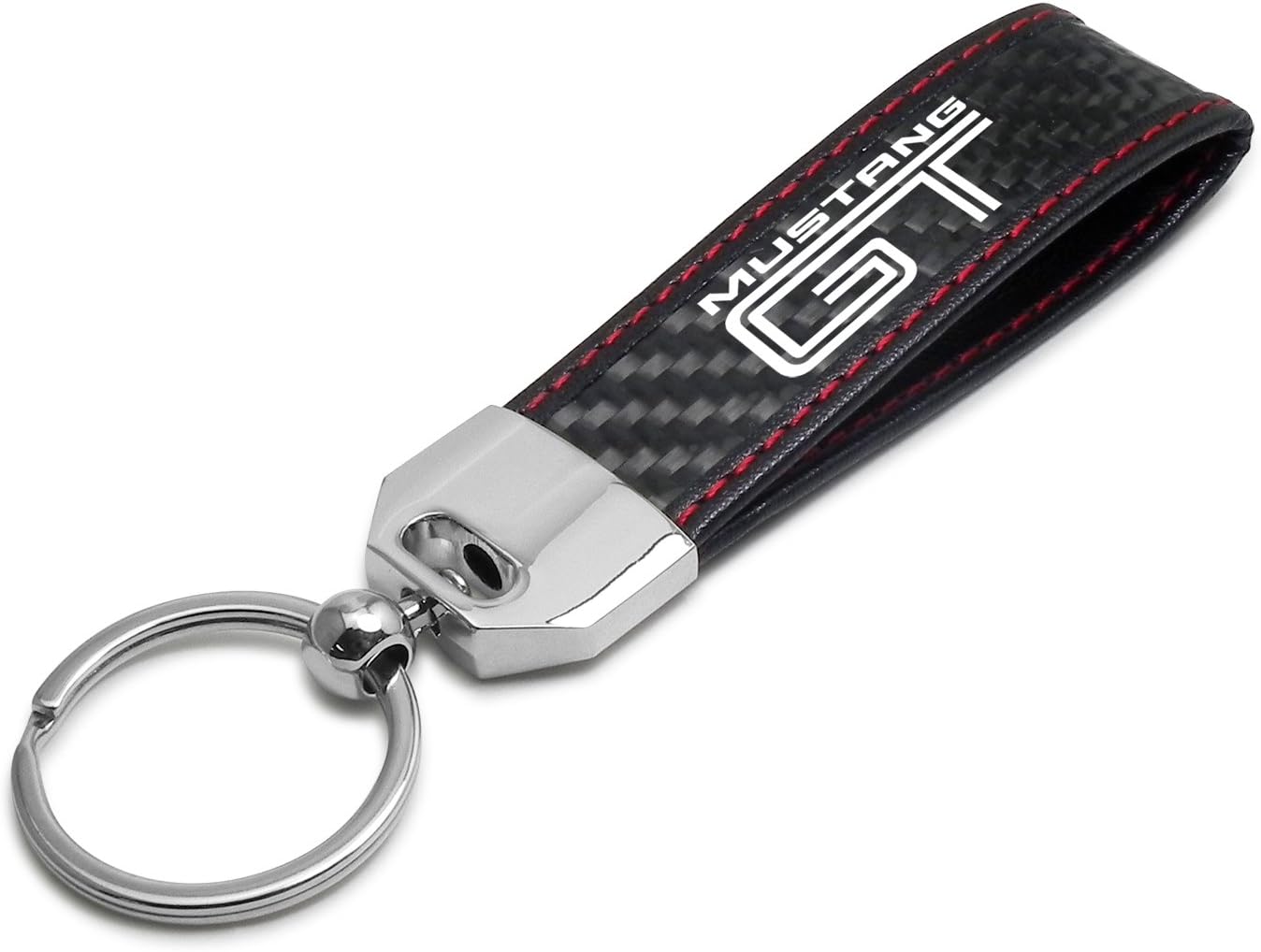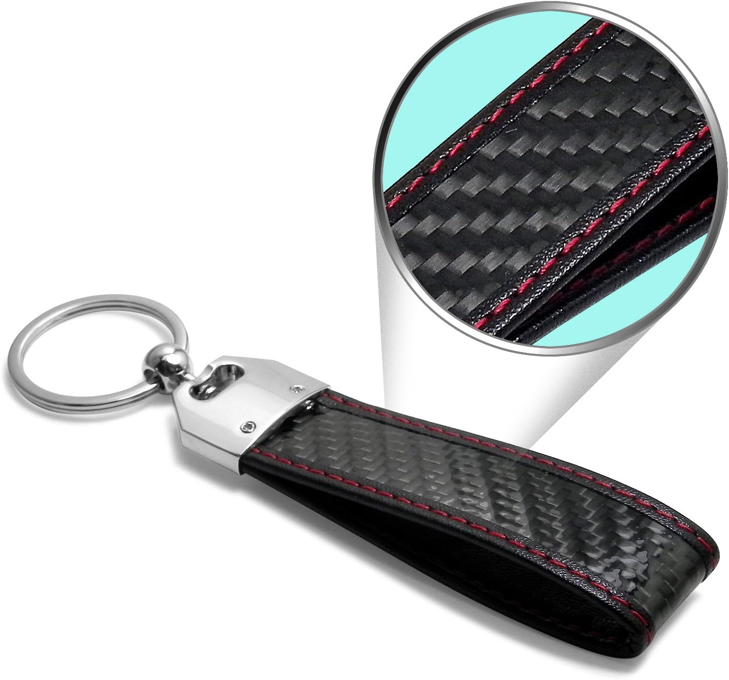 Made for Ford Mustang GT Real Black Carbon Fiber Loop Strap Key Chain with Red Stitching
