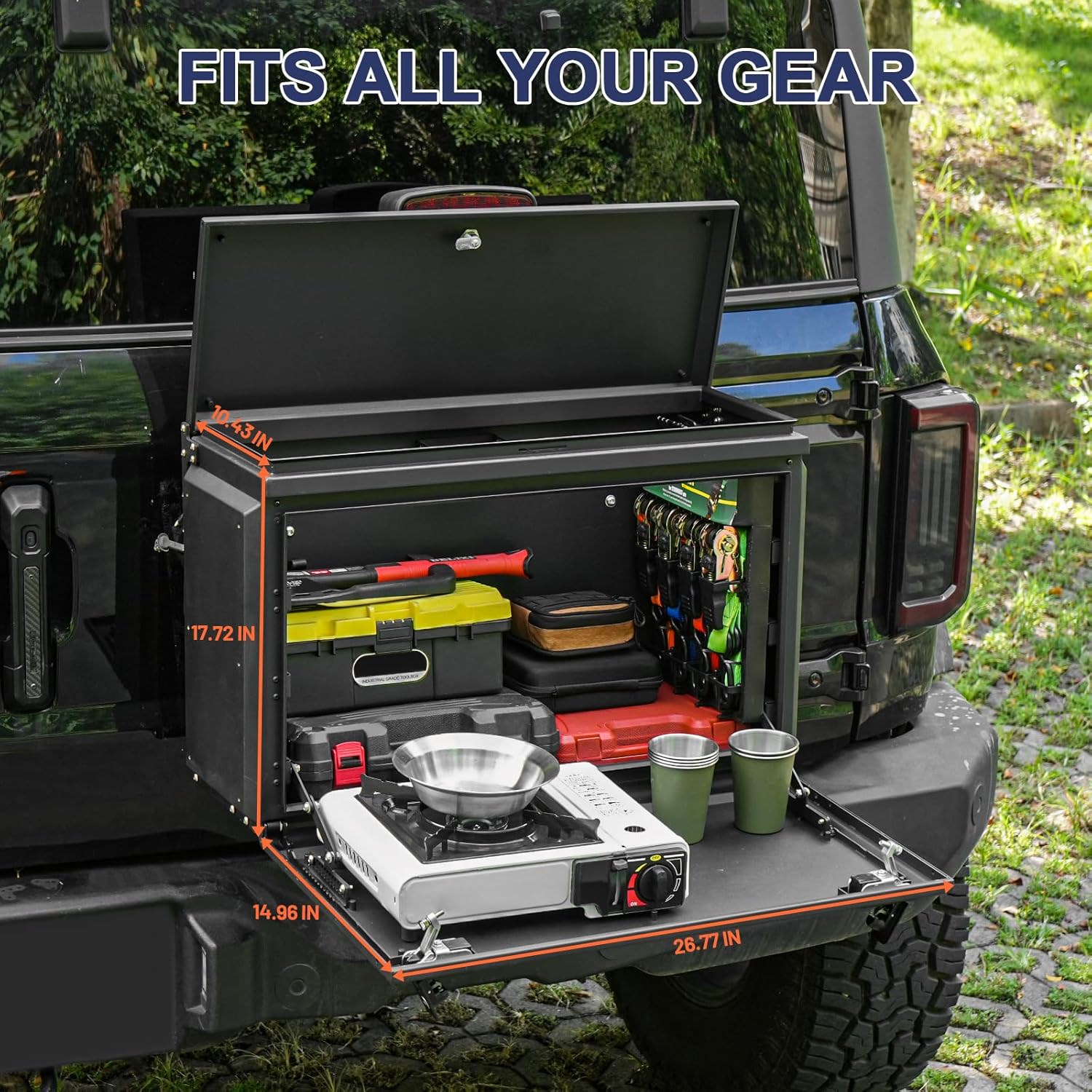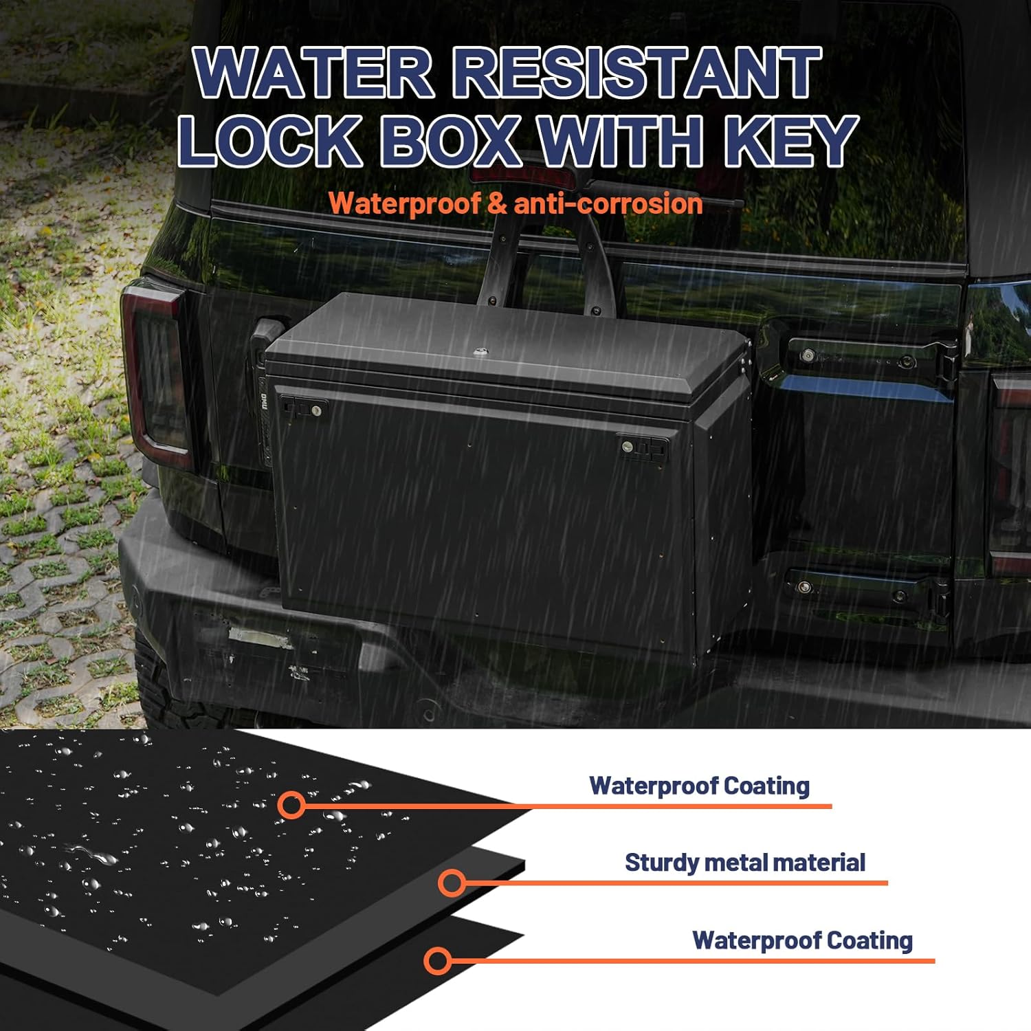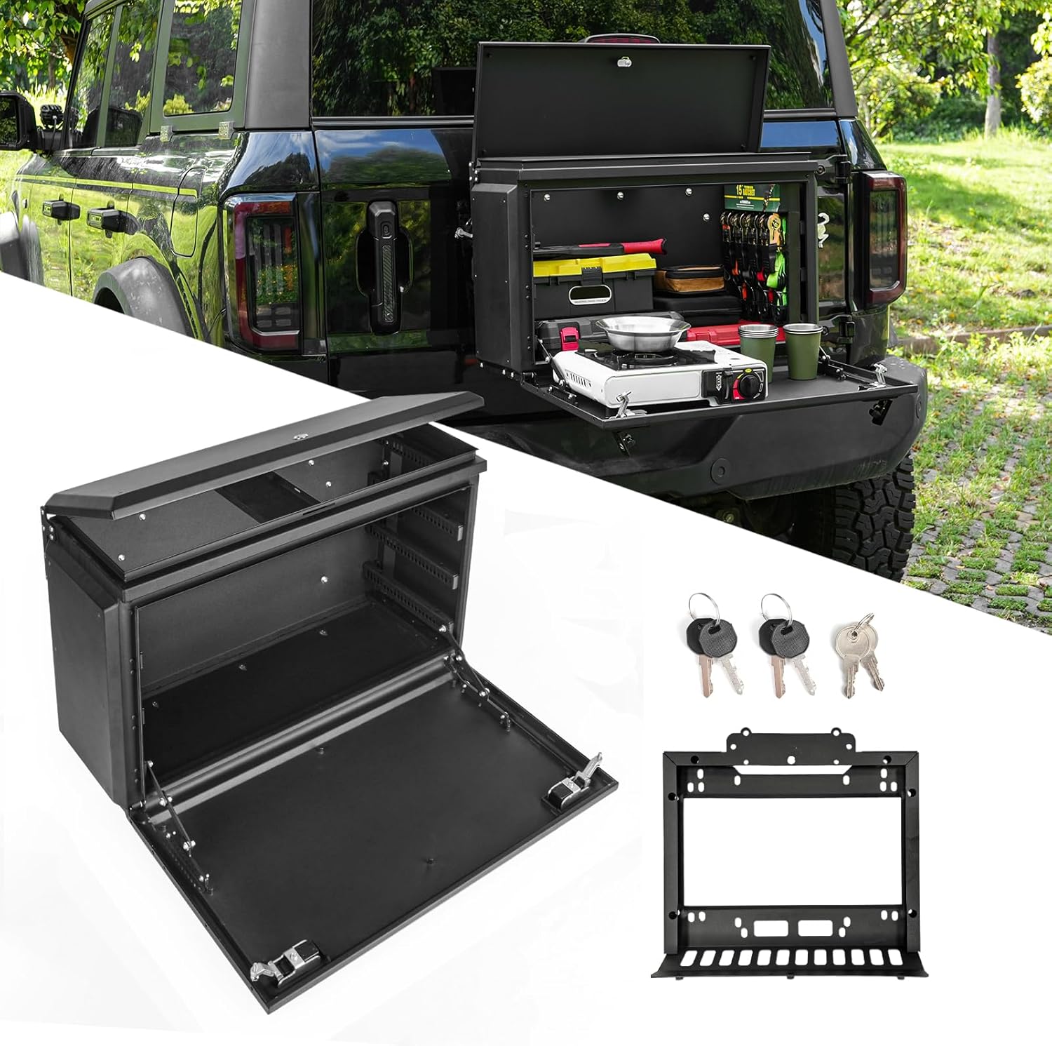 Anti-theft design: 3-Point Locking Security. Keep your gear safe with our lockable tailgate storage box. Ideal for off-road adventures, this feature offers peace of mind when leaving your vehicle unattended. Top+front access for quick gear grab.