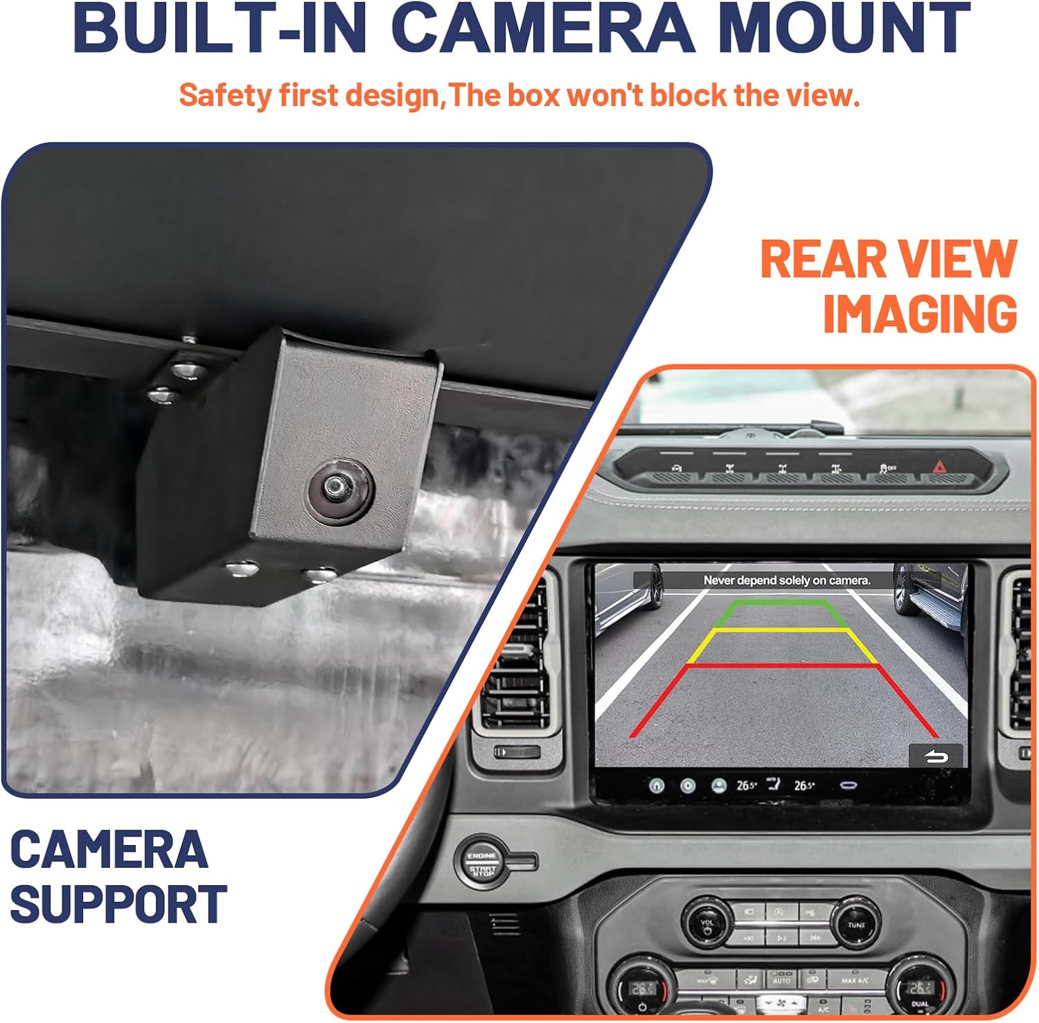 Equipped with Camera Mount: Dedicated bracket holds Ford-compatible reverse cams. No visibility obstruction – park confidently.