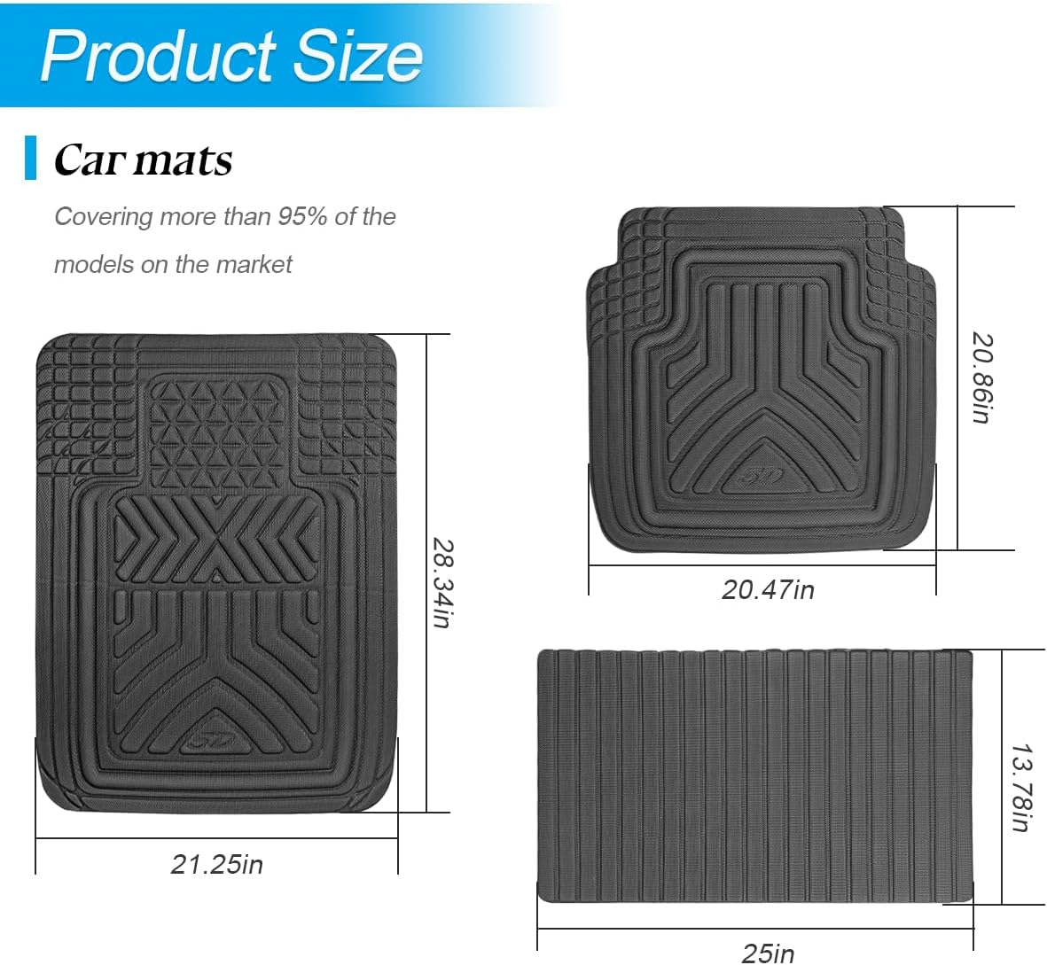 Wide Range of Vehicles: The front rack and passenger side measure 28.66 x 21.26 x 0.24 inches, the rear left and right pieces measure approximately 21.26 x 21.46 x 0.24 inches, and the rear center measures approximately 25 x 14.41 x 0.24 inches. This product is suitable for most of the vehicles in the market. Such as sedans, crossovers, SUVs, MPVs, etc., with a wide range of applications.