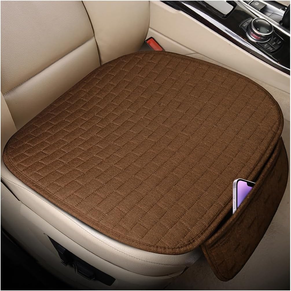 Mandark Car Front Bottom Seat Cover, 2PCS Anti Slip Comfortable Vehicle Front Cushion Protector with Storage Pocket, Breathable Linen Frontseat Pad Mat, Universal Automotive Accessories (Brown)