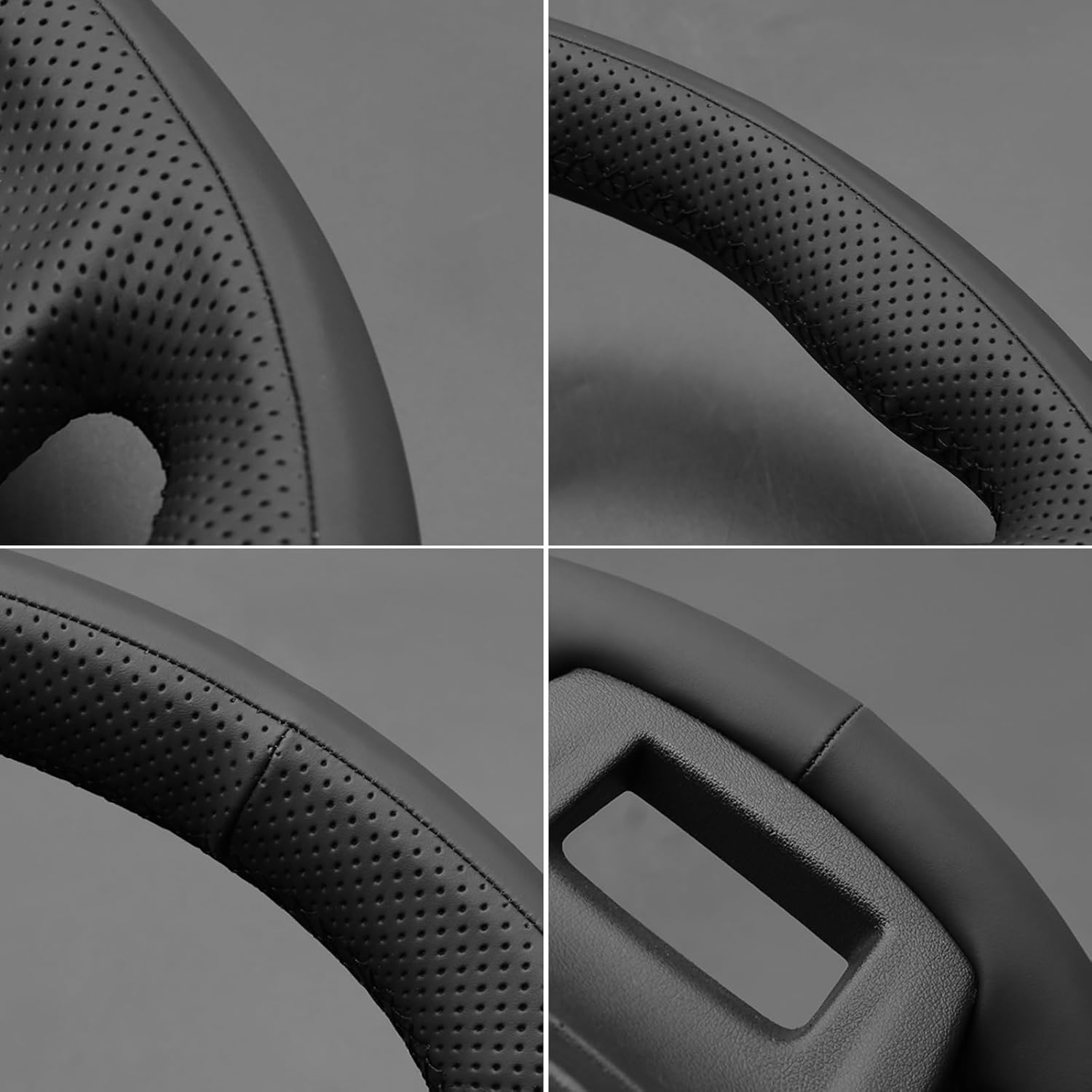 【Durable & Anti-Slip】The crafted steering wheel cover are durable with fine workmanship, reinforced stitches and wear-resistant leather material offers a long service time and non-slip surface provides a better grip with good control. obviously increase the value on your vehicle. 100% perfectly fit your steering wheel, precise fit just like the OEM and does not add excess bulk to the steering wheel.