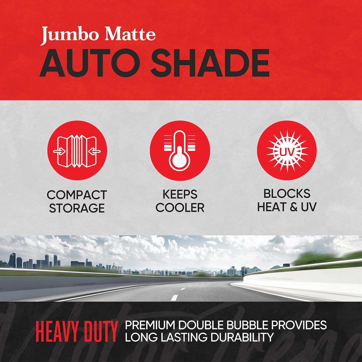 Motor-Trend original design auto sun shade. Double Bubble premium construction with reflective backing auto shade is a great way to protect your vehicle from the scorching heat or simply to protect your vehicle from the constant UV rays. Our shades are constructed with all vehicles in mind to fit most sedans, trucks and vans.