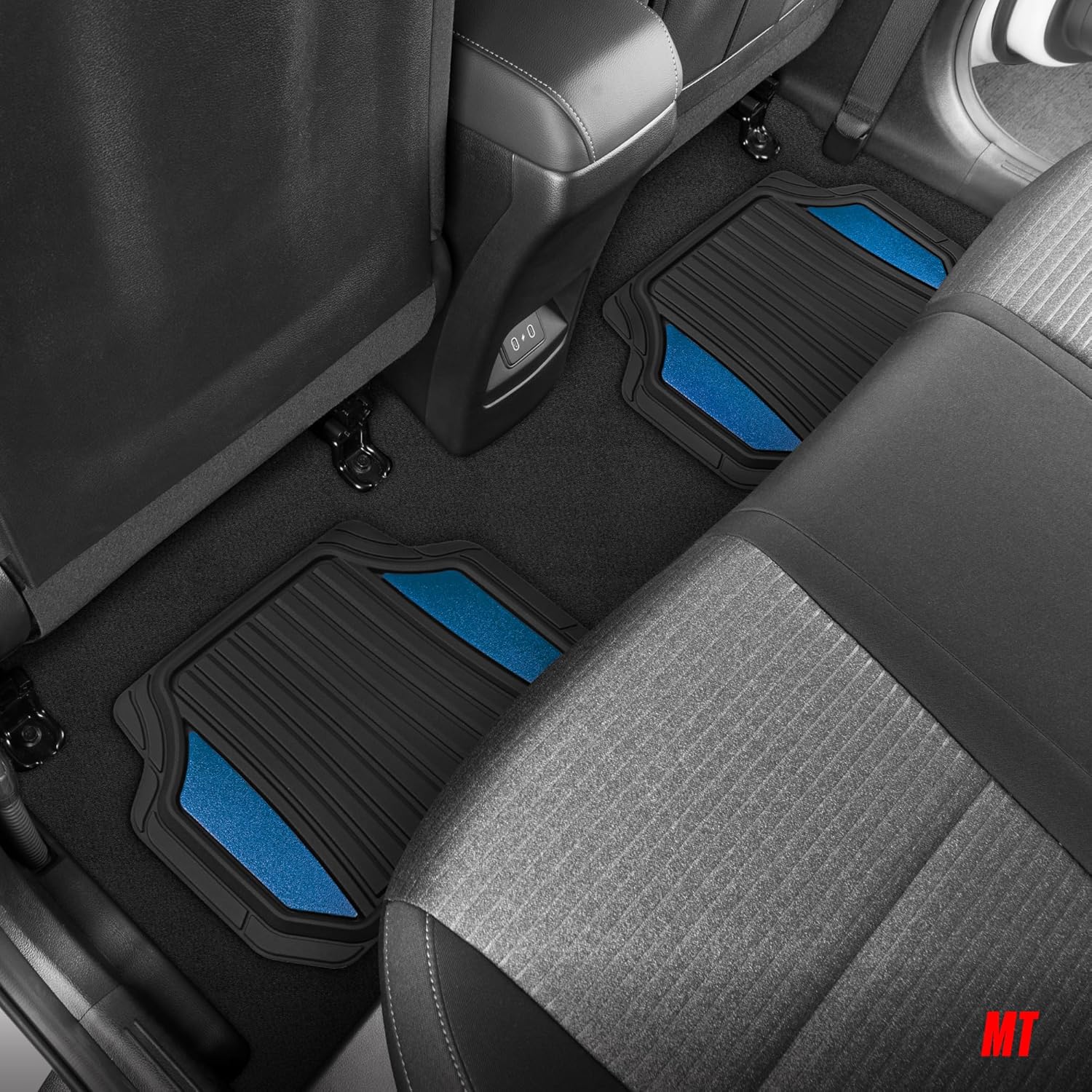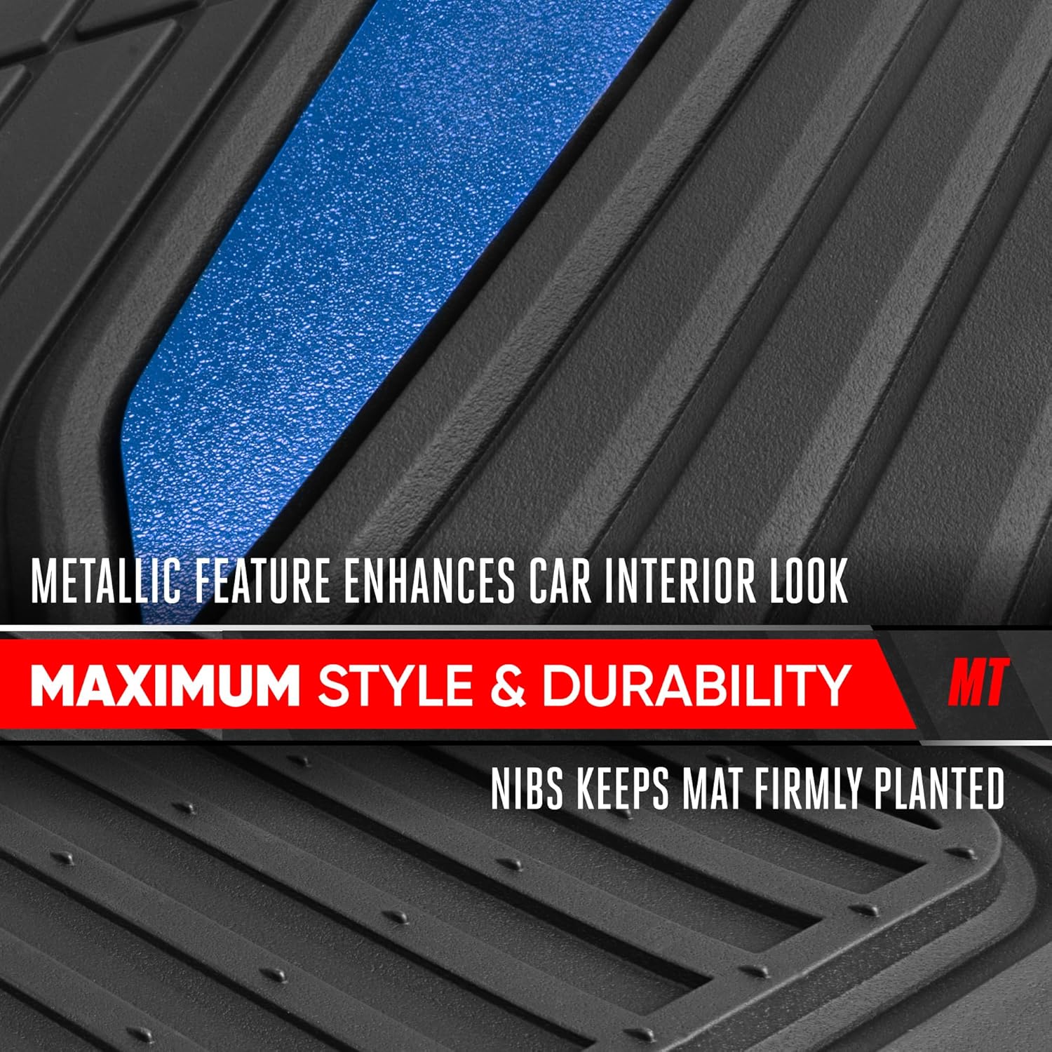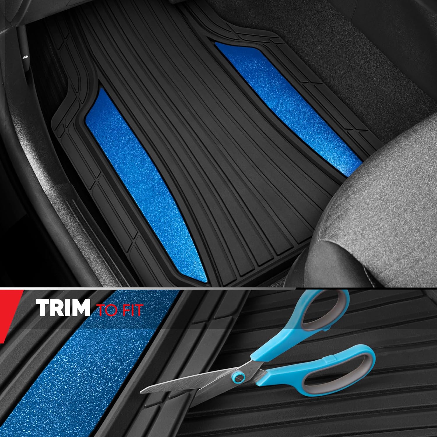 Motor Trend ChromeTech Car Floor Mats Full Set – Durable Rubber Floor Mats for Cars with Two Tone Accent, All Weather Interior Protection for Front and Rear with Non-Slip Backing, Black/Blue