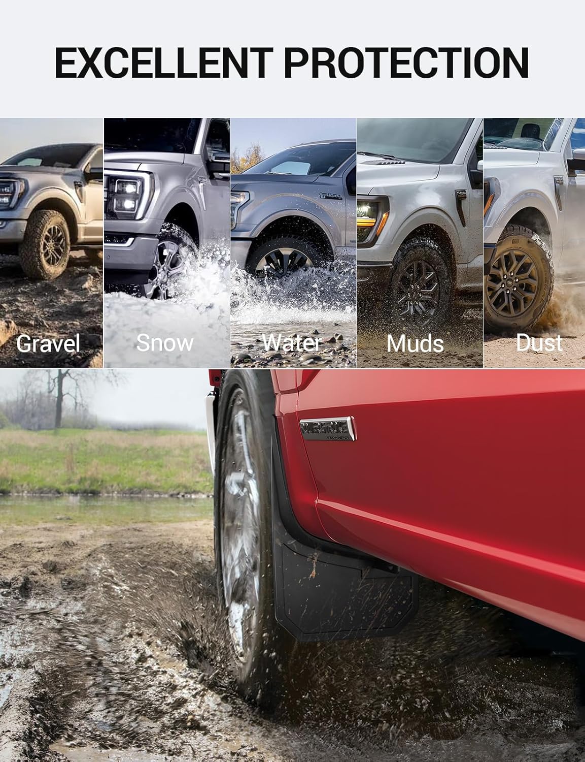 Mud Flaps Fit for 2021 2022 2023 Ford F150, All Weather Guard Mud Guards Splash Front Rear 4pc Set (for Trucks without Fender Flares)