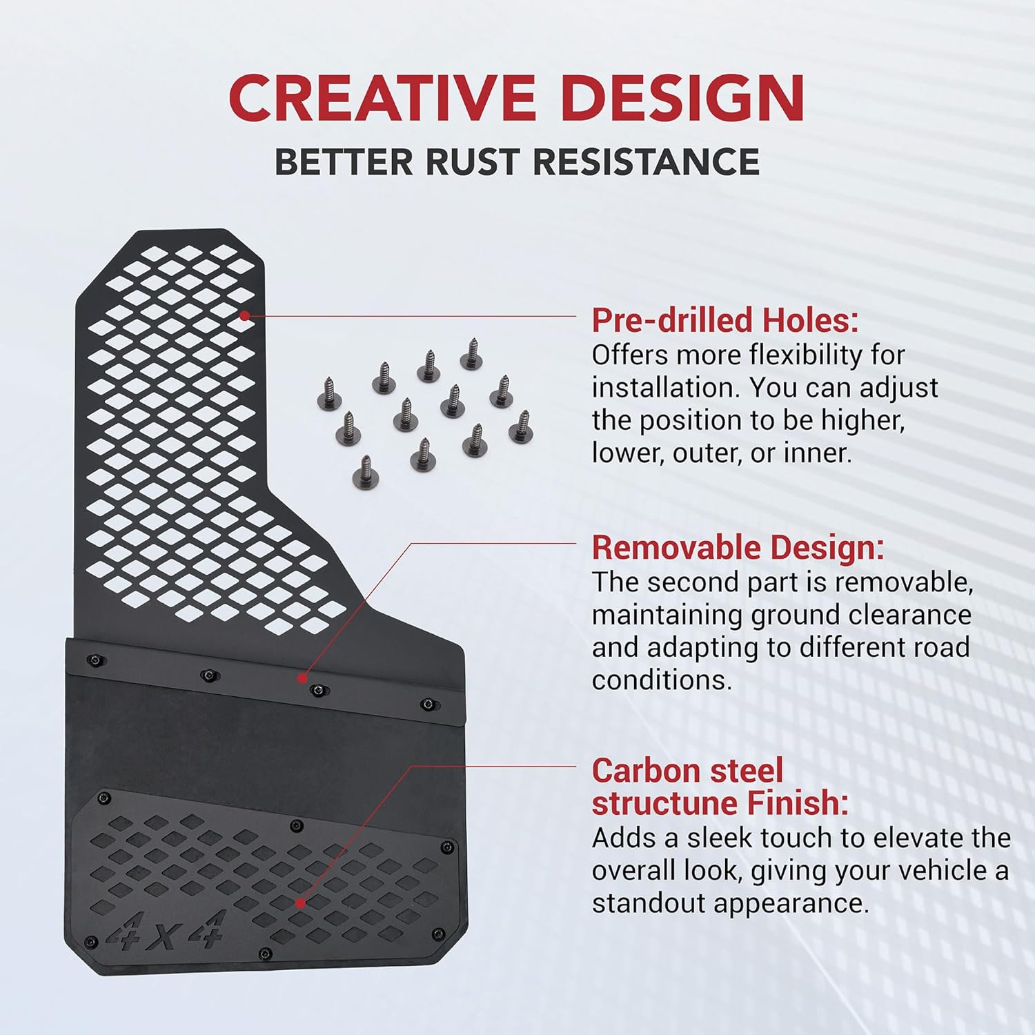 Mud Flaps Heavy-Duty Splash Guards Sediment Protection for Universal Pickup Truck SUV Off-Road Vehicles Driver & Passenger Side (Black 4pcs)