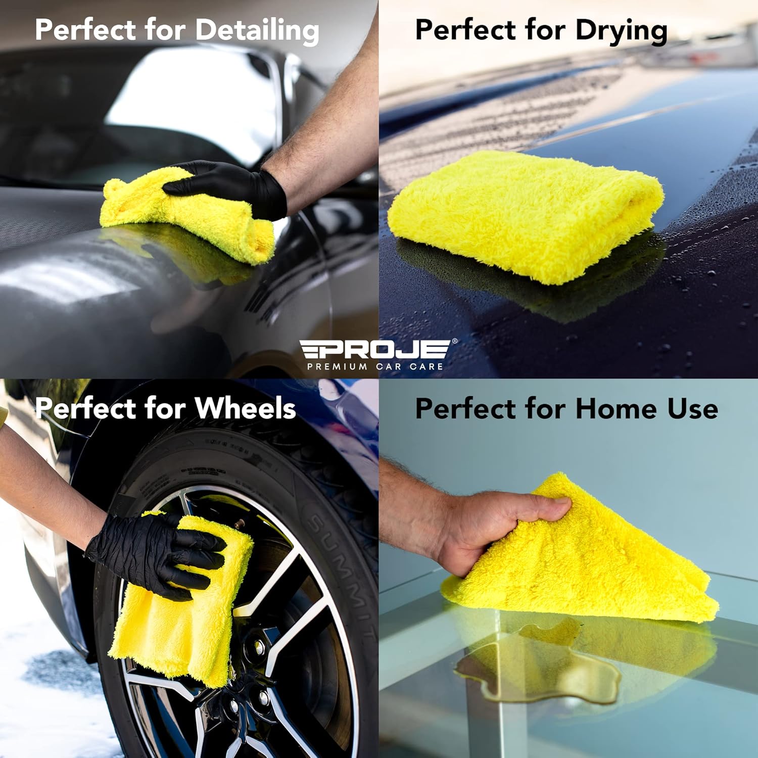 MULTIPURPOSE DETAILING TOWELS – Perfect cloth to use as car wash towels, window glass cleaning towels, car drying towel, auto polishing buffing towel, finishing towel and interior detailing towel! Use with Proje detailing sprays and waxes for waterless washing, quick detailing, compound, sealant, glaze and wax removal