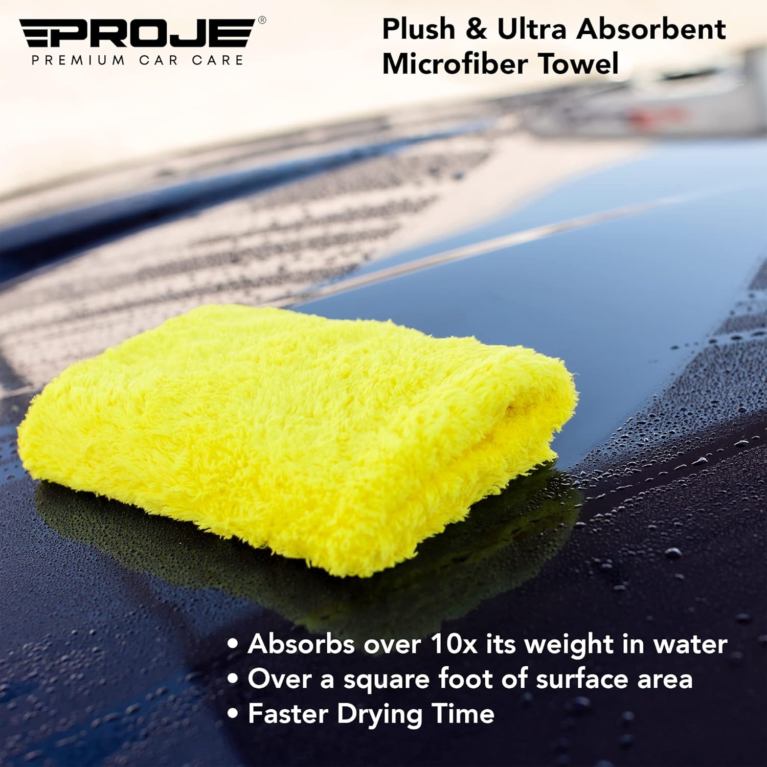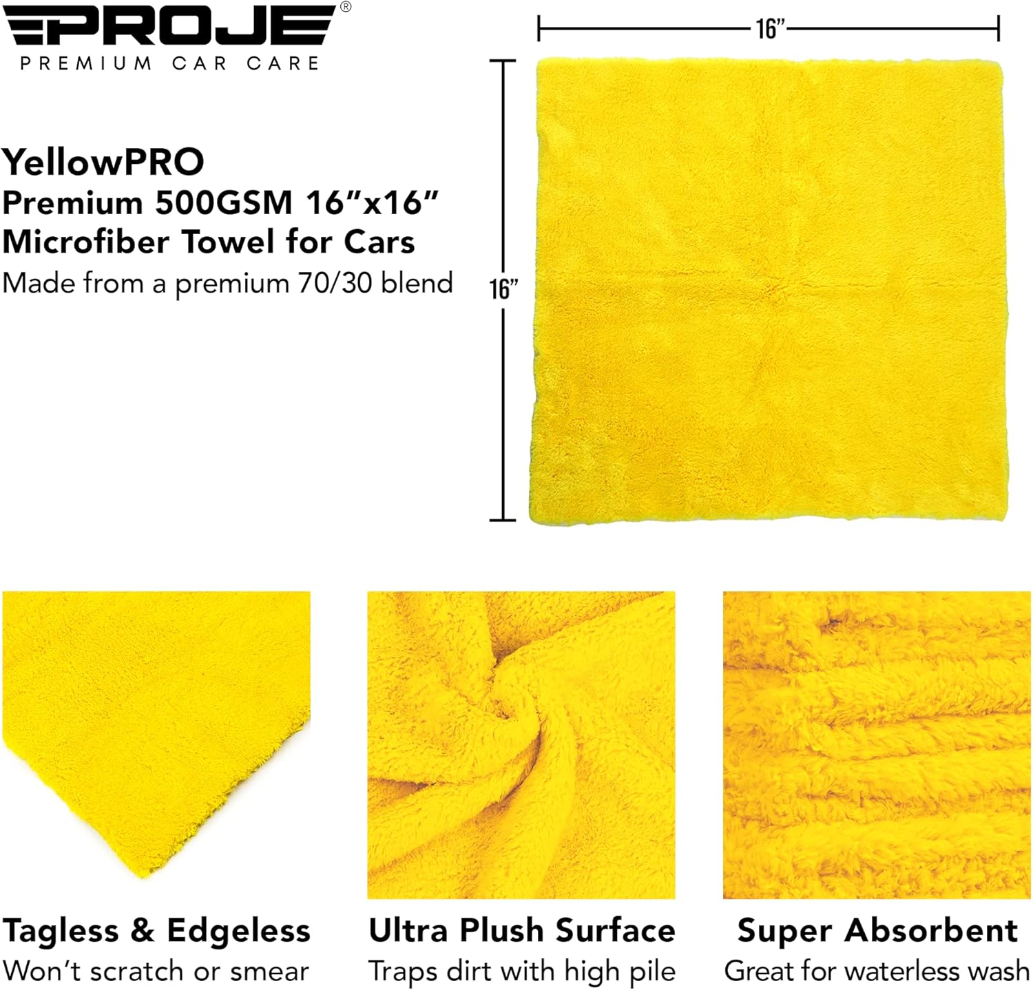PROJE’ Yellow Microfiber Towel for Car – Ultra Absorbent – Car Drying, Polishing, Buffing Cloth & Interior Detailing Towel – 500 GSM 16x16in – Auto Detailing Supplies – Pack of 6 Premium Car Care
