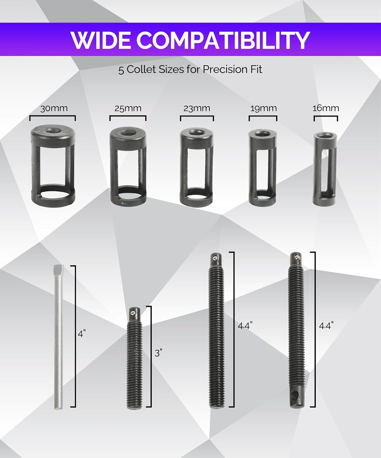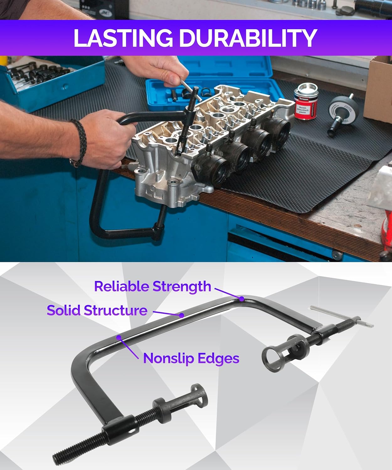 [Package Includes] 10 piece valve spring kit: a wide C clamp, 3 extension rods (3 “4.4” and 4.4 “), 5 clamp adapters (16, 19, 23, 25 and 30mm), a 4-inch handle, and 2 valve laps. A practical set makes work easier. The reinforced blow molded shell keeps everything in order, making it easy to carry and store during work intervals.