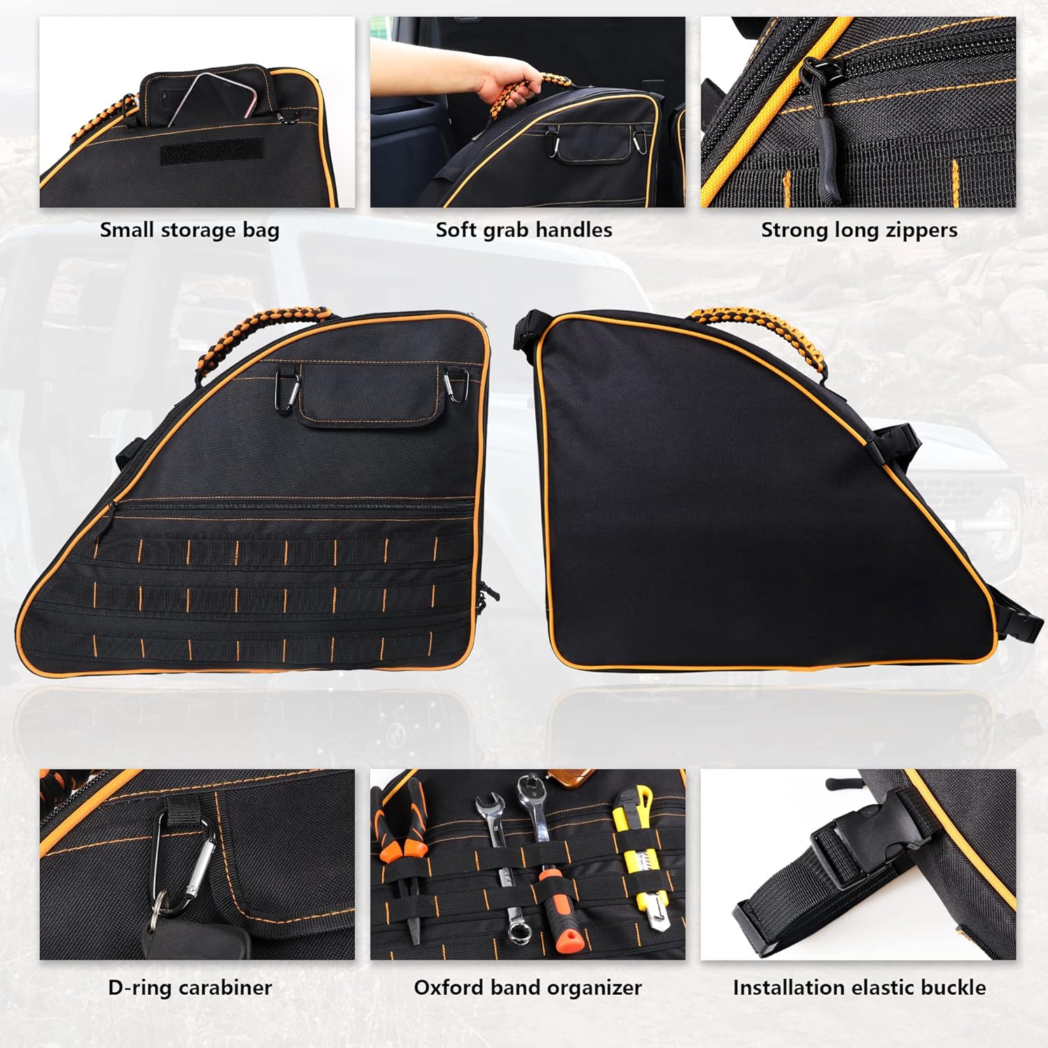 WHAT YOU GET: 2 Pack roll bar storage bags for 2021 2022 2023 2024 2025 Ford Bronco 4 Door