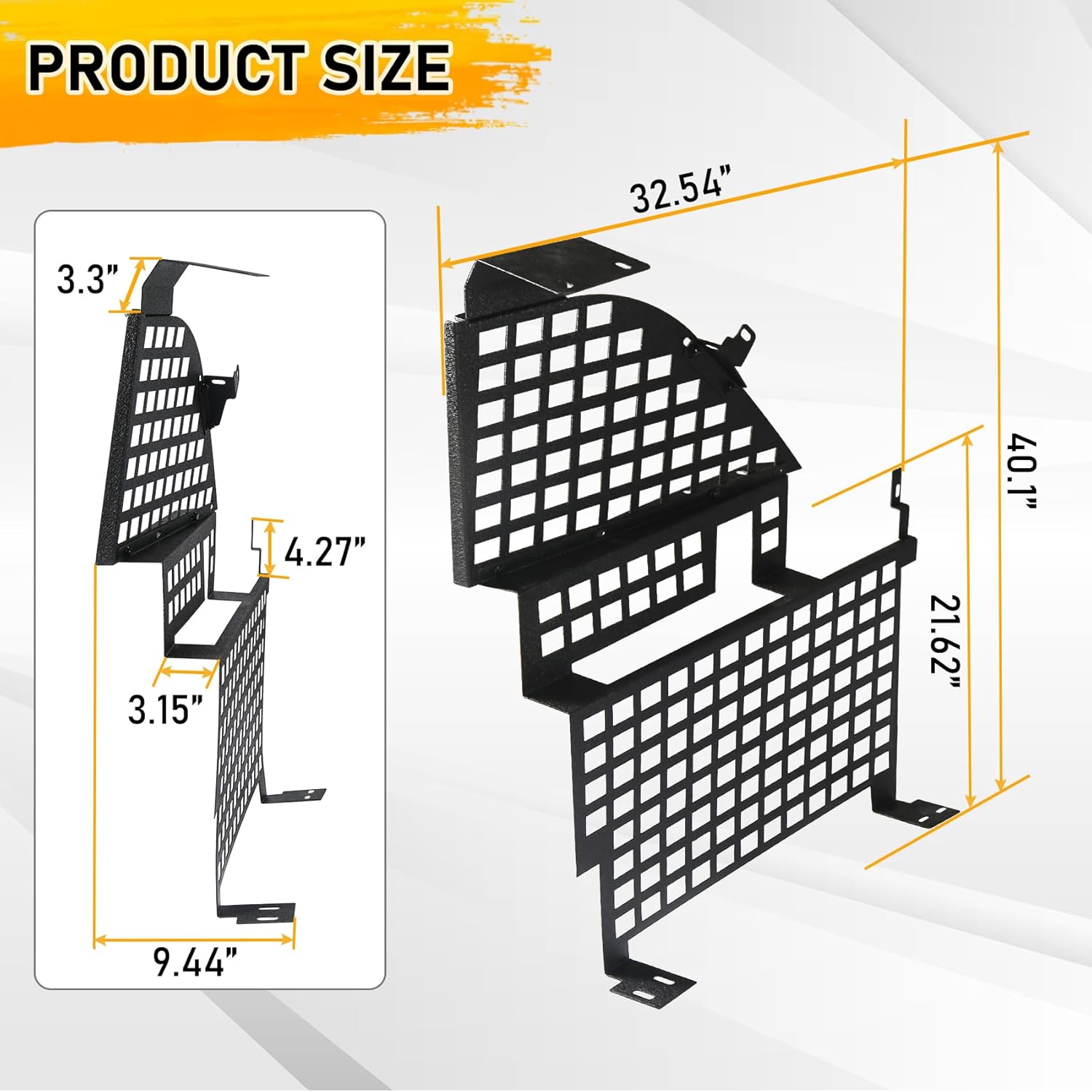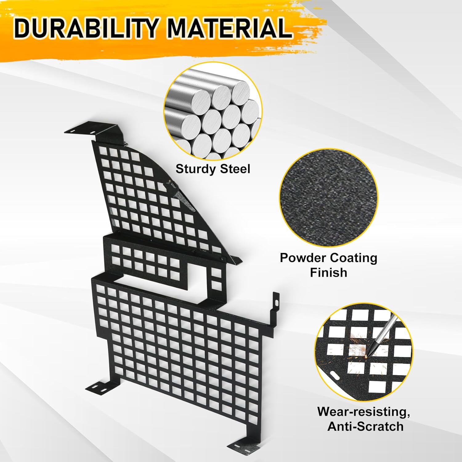 Built to Last: The Side Window Cargo Organizer Storage Panel fit for Ford Bronco 4-Door Hardtop is constructed from durable steel with a black powder coat finish, offering exceptional corrosion resistance and scratch protection for long-lasting performance