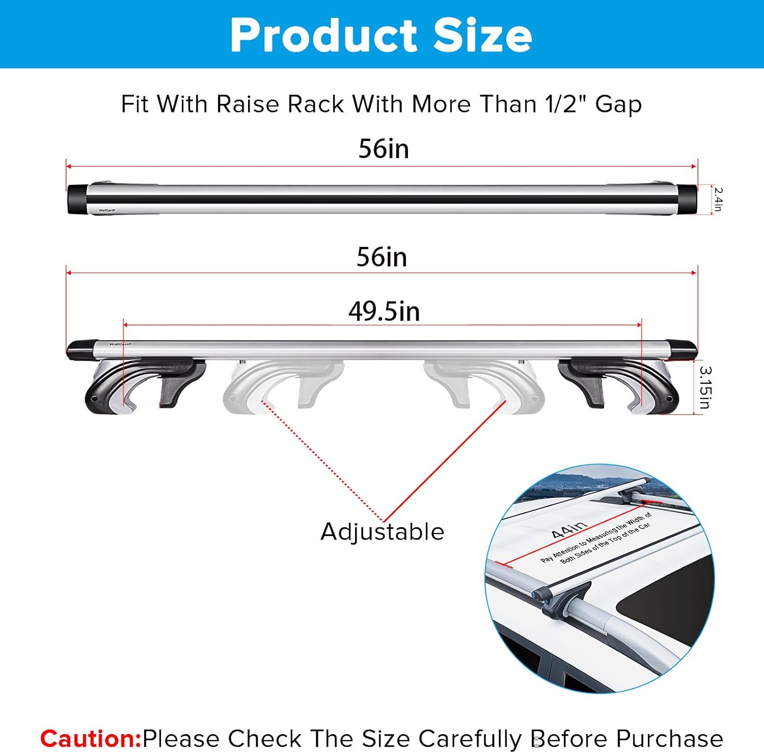 Roof Rack Cross Bars 56″, Universal Aluminum Roof Top Cross Bar Set, 260 lbs Load Capacity, Suitable for Raised Side Rails (with Gap Design)