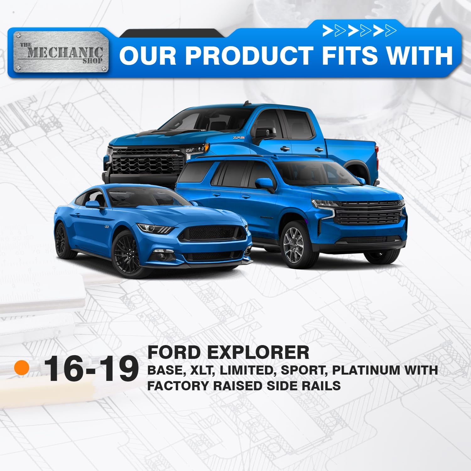 Please check the fit first with the ConfirmedFit tool! These 260Lbs roof rack crossbars are compatible with 2016 2017 2018 2019 Ford Explorer Base, XLT, Limited, Sport, Platinum with factory raised side rails. They are compatible with duty aluminum roof rails and side rails heavy duty, the rack cross bars are designed to seamlessly integrate with roof rails crossbars and rails crossbars cargo systems, ensuring a perfect fit for your vehicle.