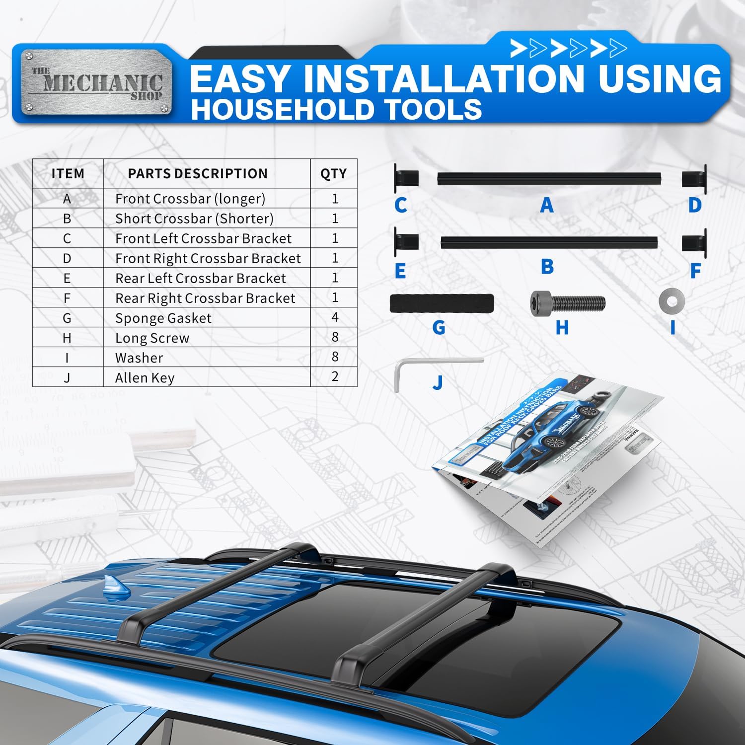 Constructed from heavy-duty aluminum roof materials, TMS roof rail cross bars are built to withstand heavy use. do not interfere with skylight operation and allow slight length adjustment for body tolerances. Whether you’re carrying a roof rack basket, luggage, kayak, or bike, the cross bar 260lbs capacity ensures reliable performance. The roof crossbar is engineered to handle heavy-duty aluminum loads, making them perfect for canoe, bike, or car roof rail needs.