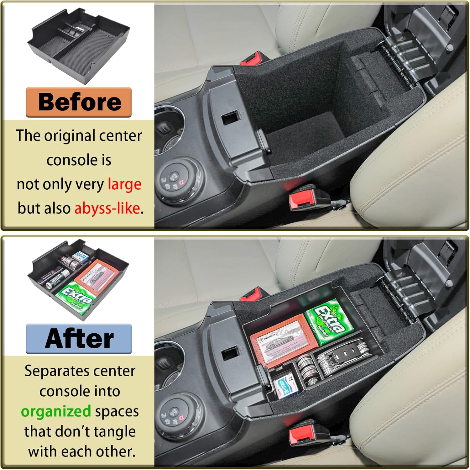 ORGANIZING SIMPLIFIER – This armrest storage tray makes small items easier to access instead of digging through a deep console hole. And holds a good amount of stuff to keep everything organized.