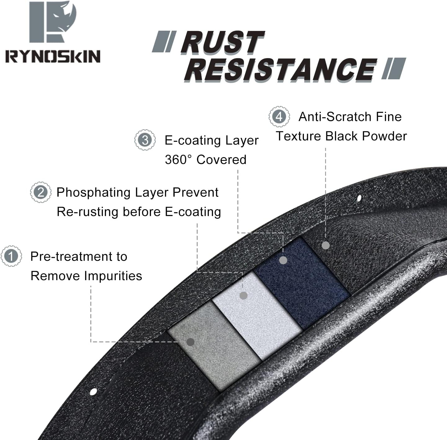TOUGH & DURABLE – RYNOSKIN Bronco fender flares are made from heavy-duty carbon steel with 360° e-coating layer and anti-scratch heavy texture black powder coating finish that is best for rust resistance.