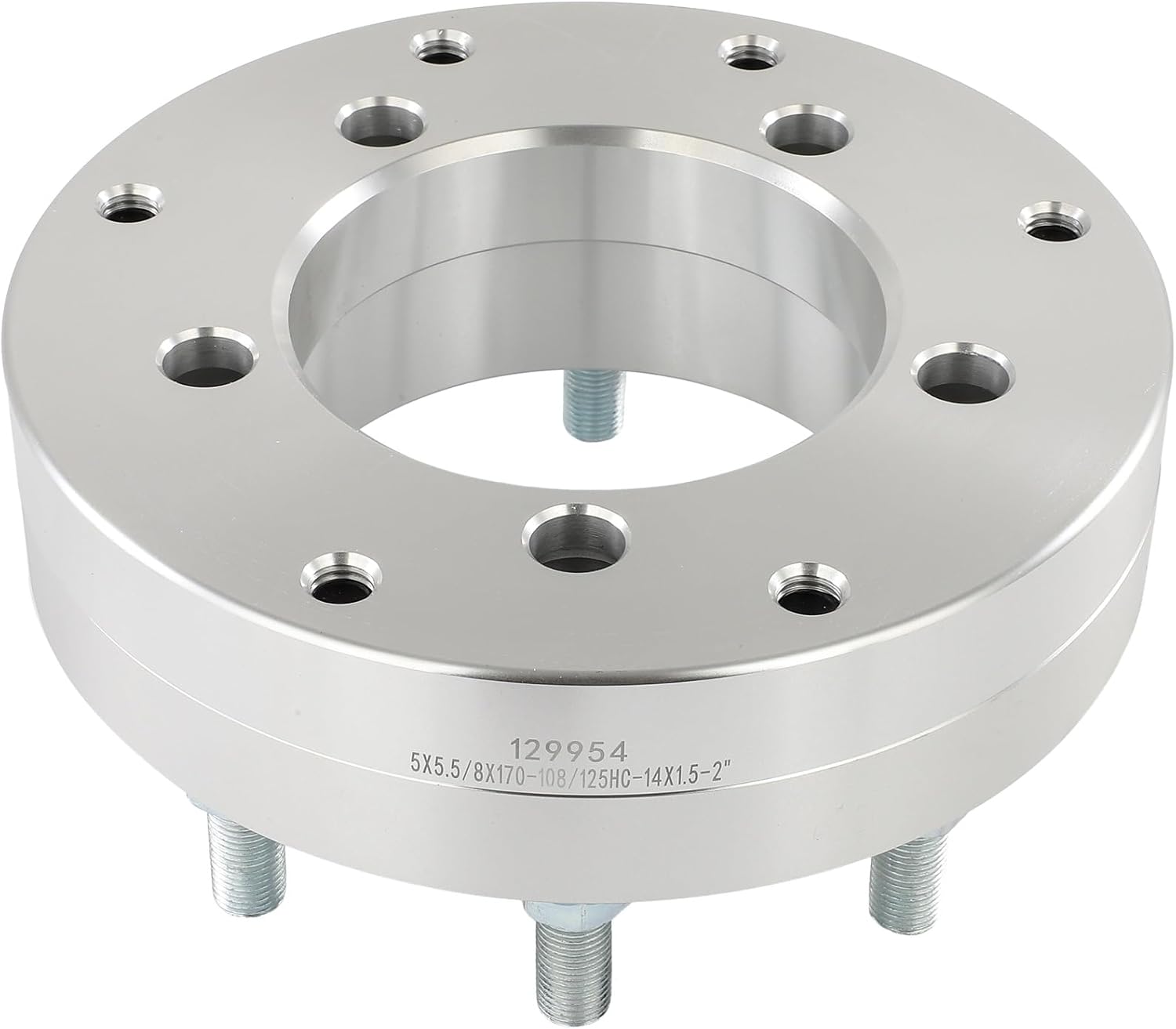 【 2″ Wheel Adapters Kit Include 】 2Pcs Set of 5×5.5 Wheel Adapters. Thickness: 2″ or 51mm, Vehicle Bolt Pattern: 5×5.5, Wheel Bolt Pattern: 8×170, Center bore: 108mm to 125mm, Thread Pitch: 14×1.5
