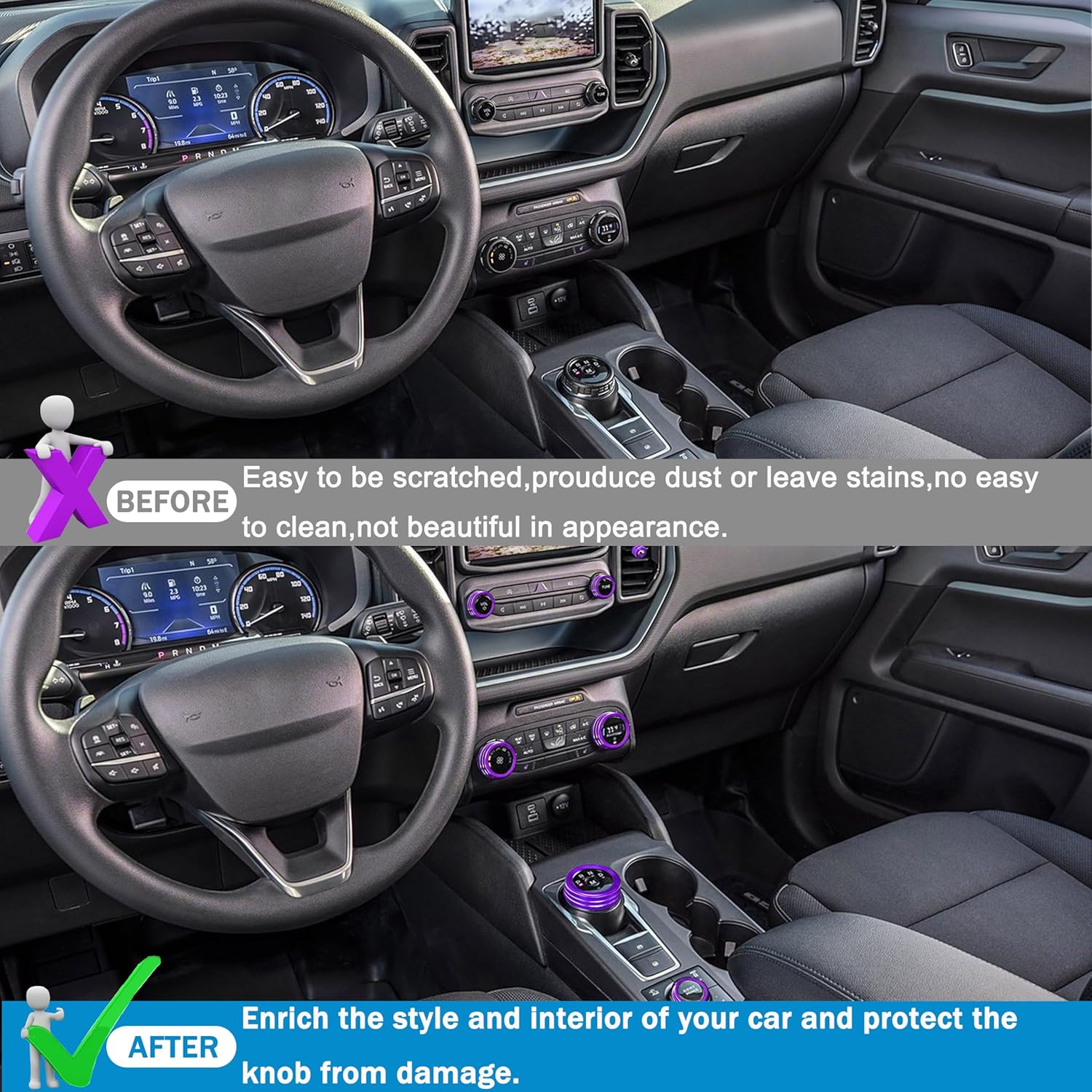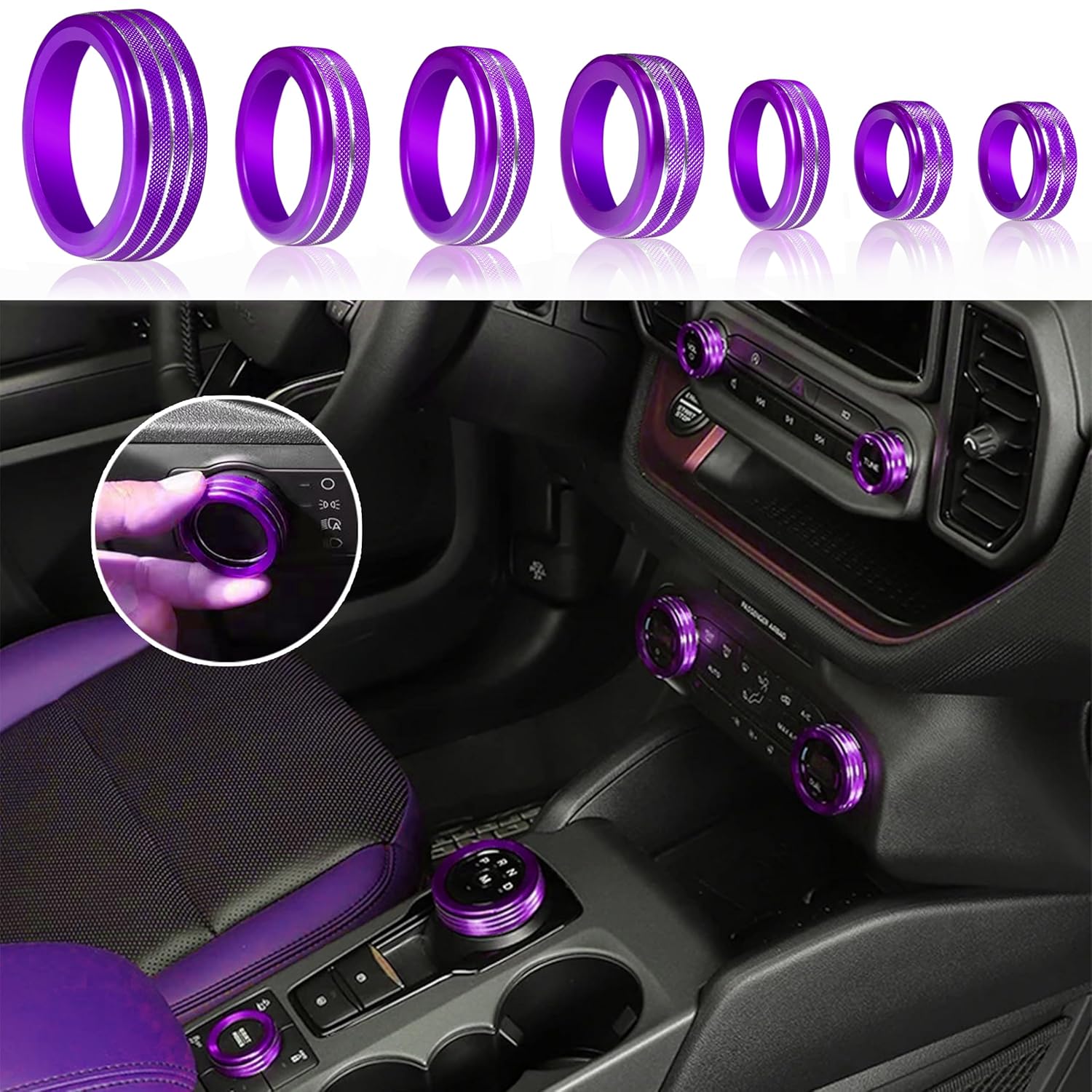 SENSHINE Air Condition, Vent Knob Cover for 2021 2022 2023 2024 Ford Bronco Sport Accessories AC Climate Headlight Contorl Volume Tune Switch Ring 4WD Knob Gear Shift Switch Button Covers 11Pc(Purple)