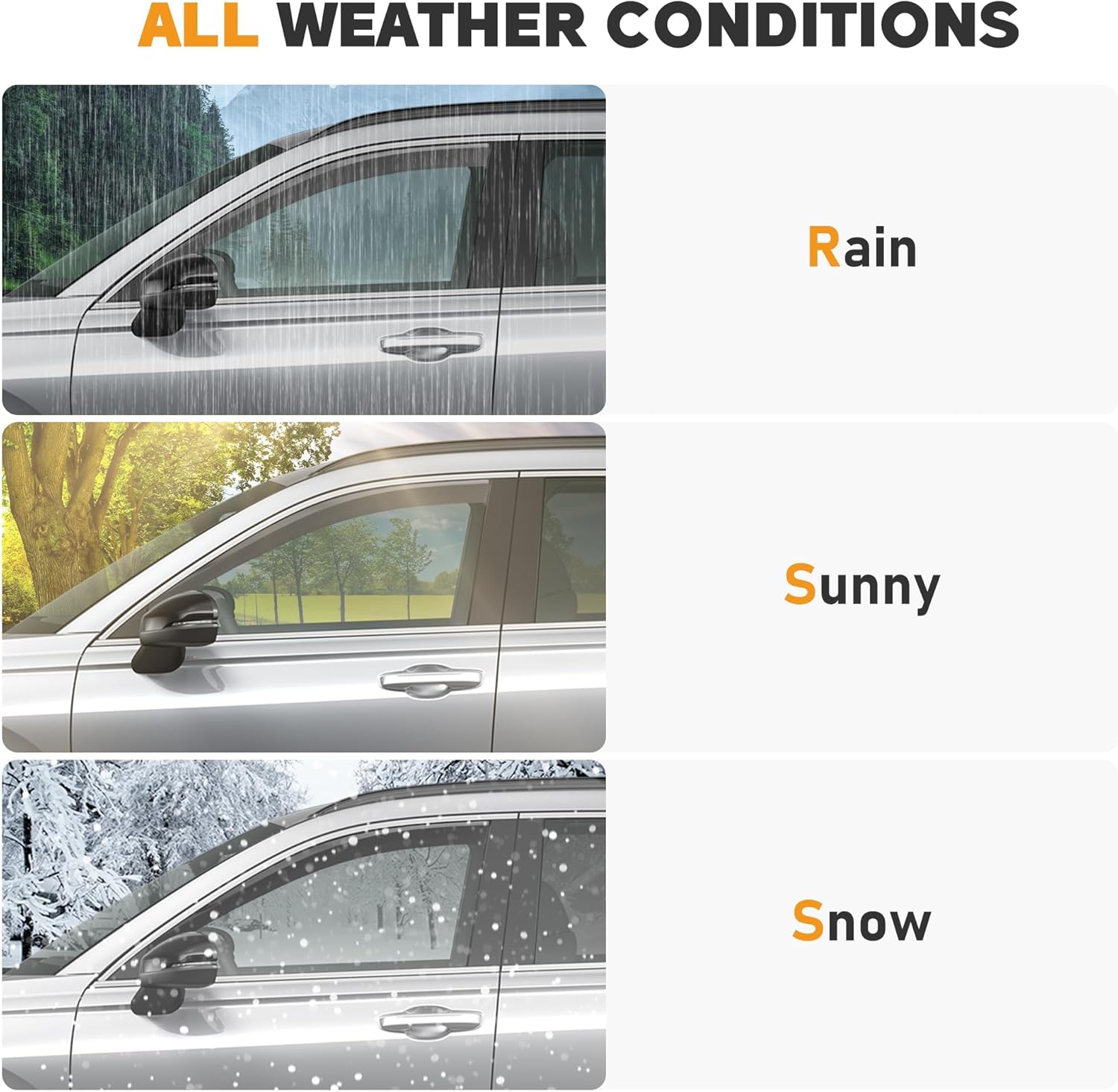 Improved Ventilation and Air Flow: Our window deflectors are suitable for all weather conditions and help to improve ventilation inside and outside the vehicle, reducing mirror and window fogging while increasing air circulation