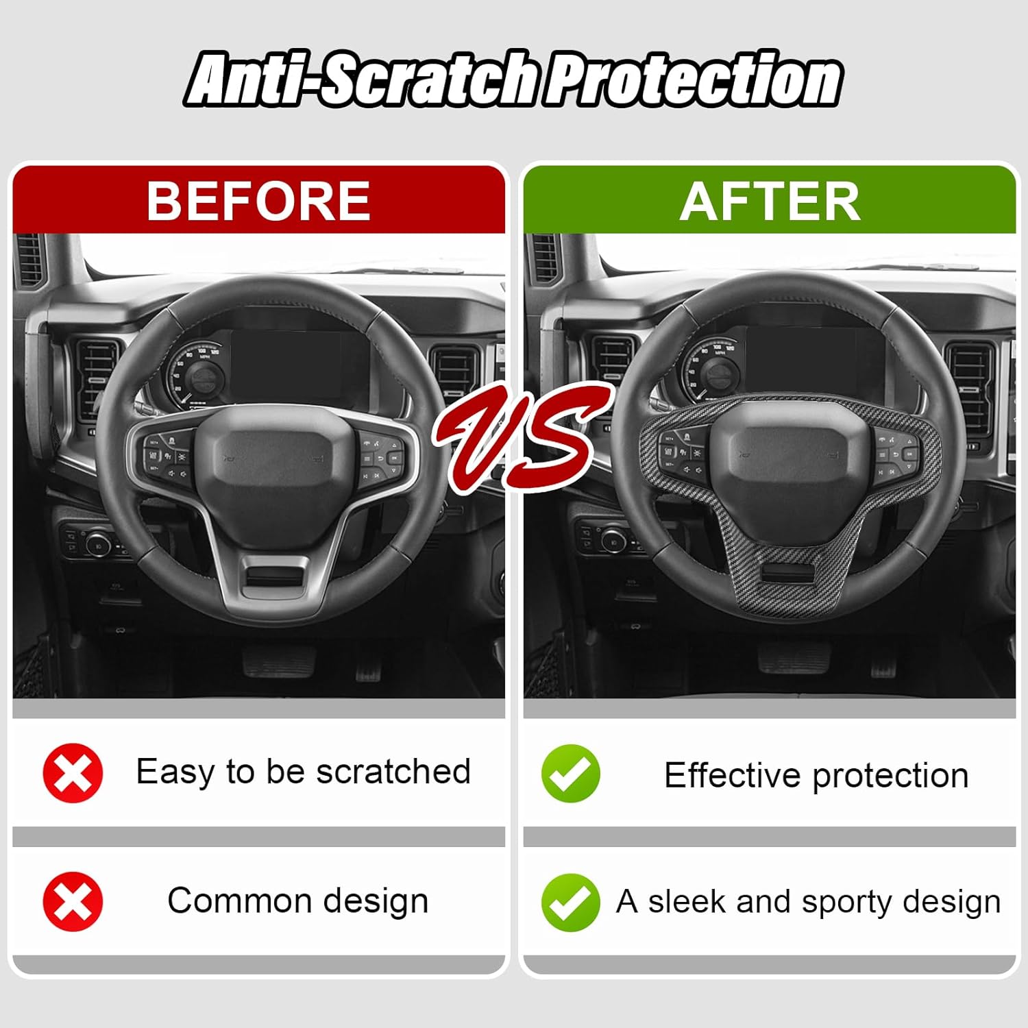 Premium Material: The steering wheel trim for Bronco 2024 made from high-density ABS material is resistant to scratches, fingerprints, and daily wear. The matte carbon fiber pattern provides a subtle sporty look for your vehicle.