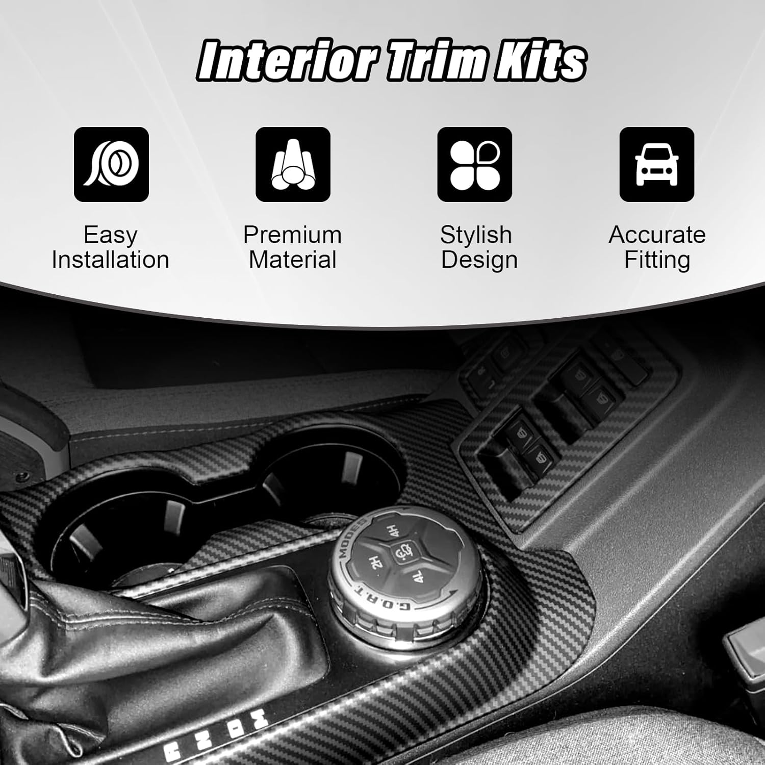 Perfect Fitment: The interior trim kit is compatible with Ford Bronco 4 Door 2024 2023 2022 2021, ensuring seamless alignment with gear shift panels, door handle bowls, and steering wheel trim. NOT FIT for Bronco 2-door models or manual transmission. Please confirm compatibility with your specific model before purchasing.