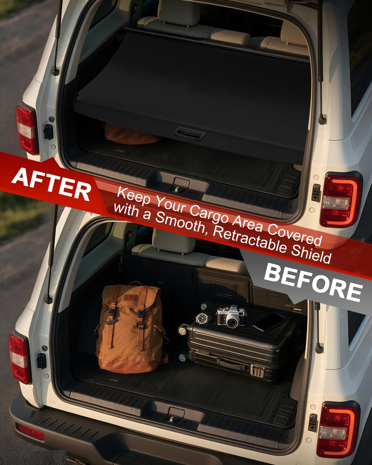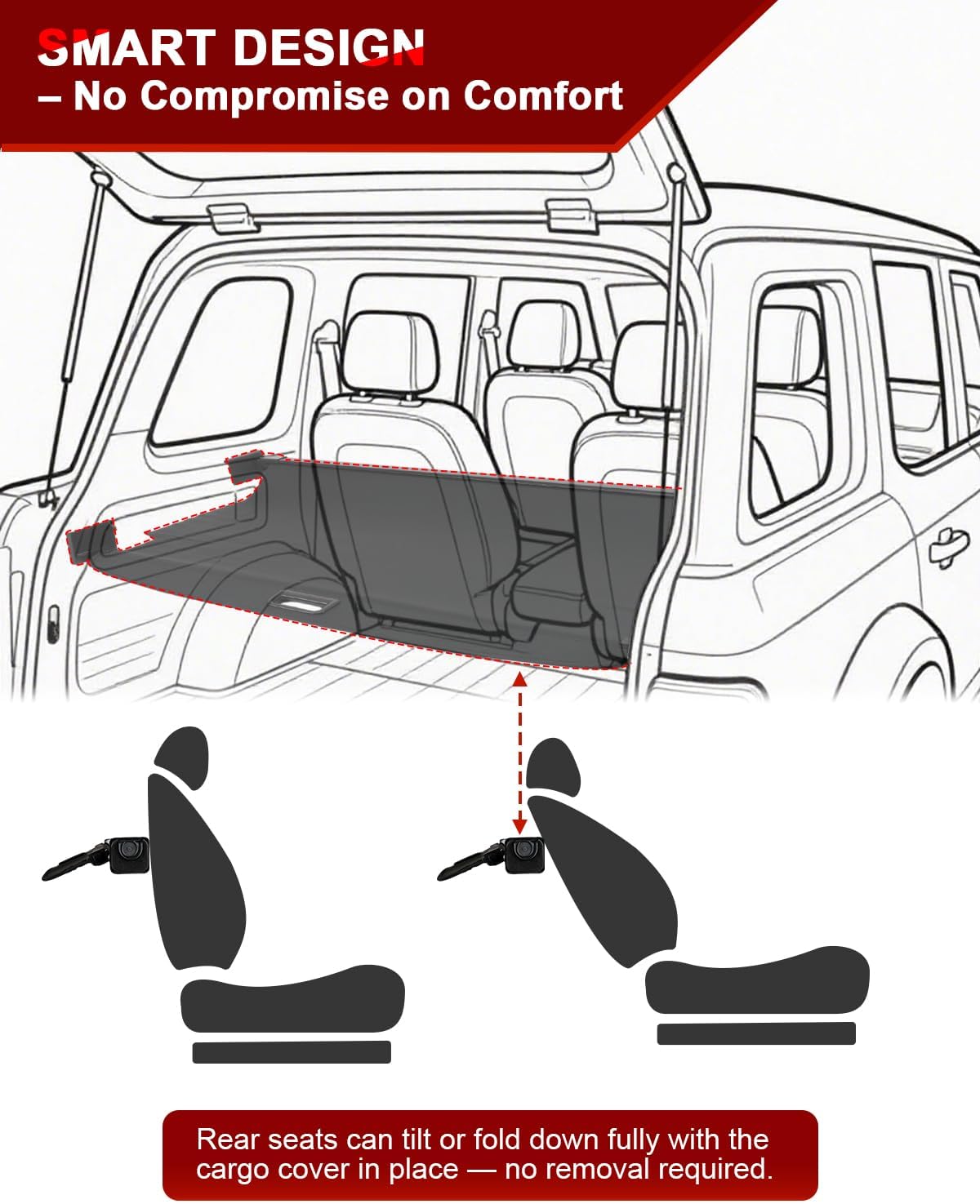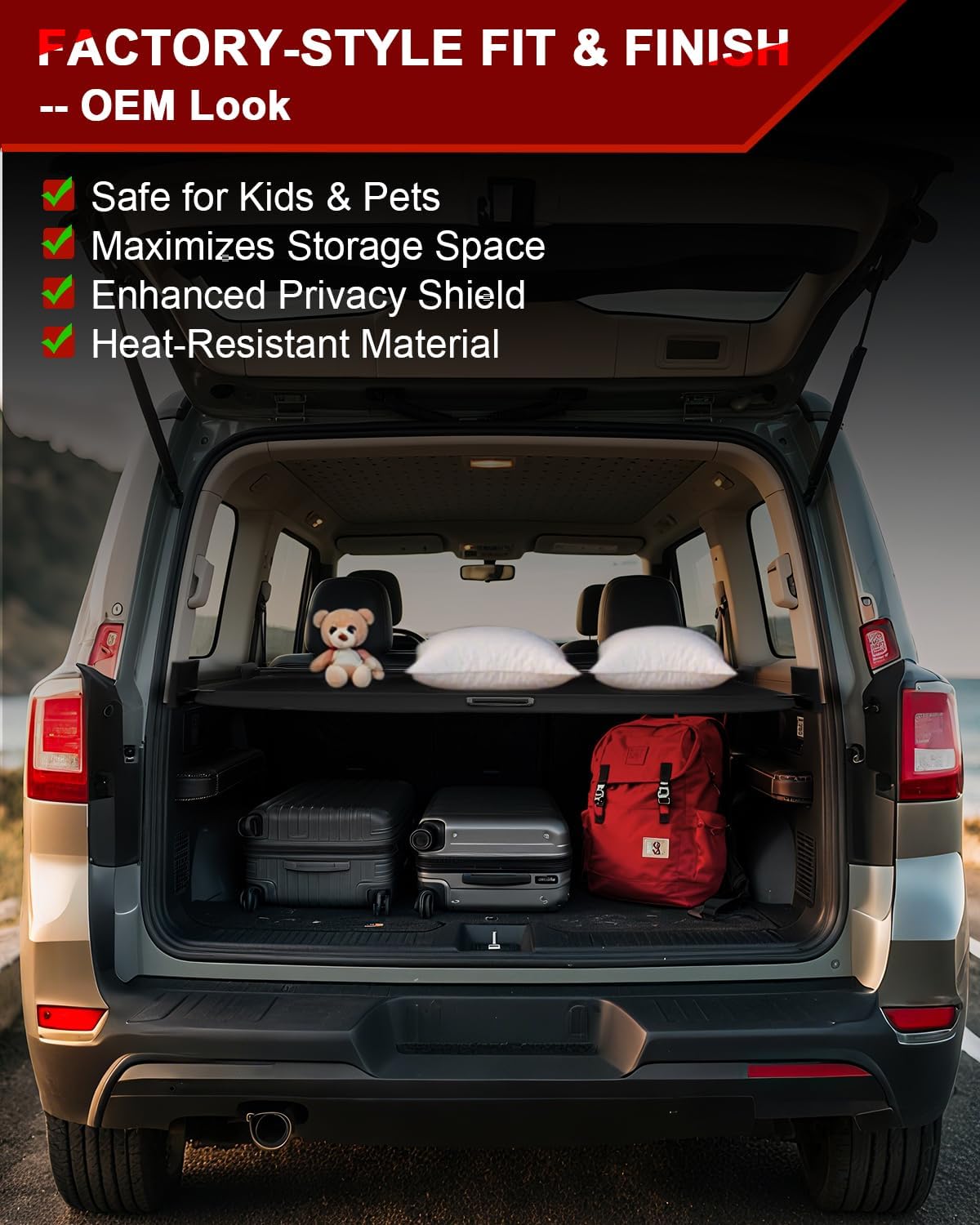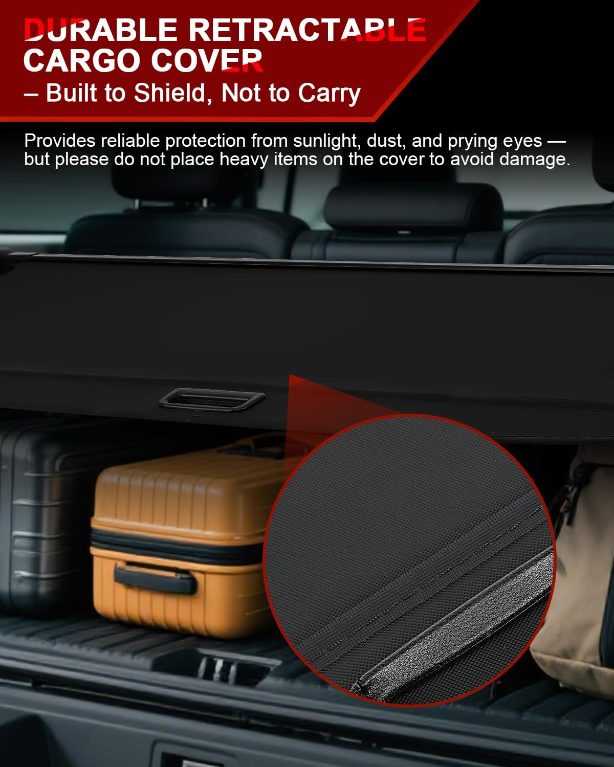 Retractable Cargo Shade Cover — Upgraded retractable design allows easy extension to cover your cargo and smooth retraction when loading larger items. Space-saving and flexible for everyday use