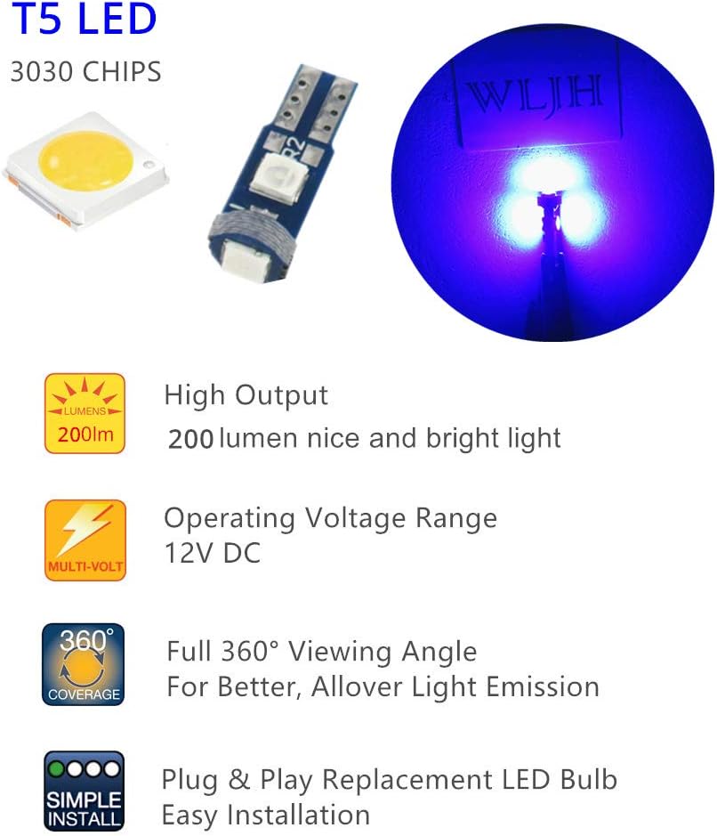 WLJH 74 Led Bulb Dash Lights Mini T5 2721 27 37 286 Wedge PC74 Twist Socket Automotive Instrument Panel Gauge Light Kits Cluster Shift Indicator Interior Bulbs 12V Blue Pack of 20