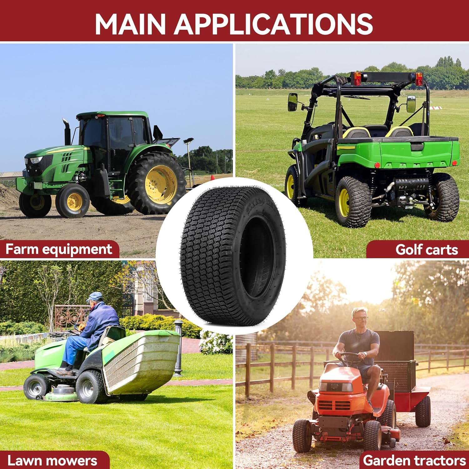 Compatibility: Our 23X8.5-12 lawn mower tires are compatible with lawn mowers, riding lawn mowers, lawn tractors, and garden tractors
